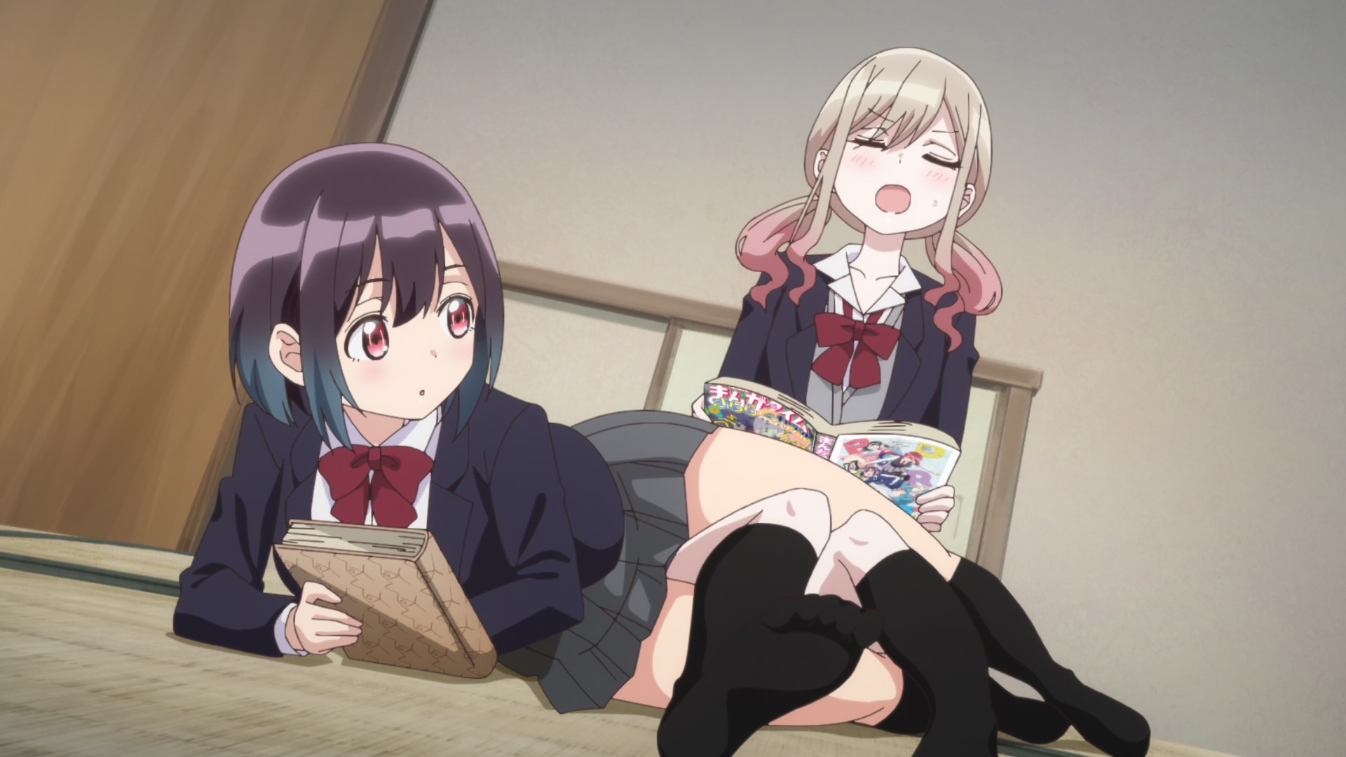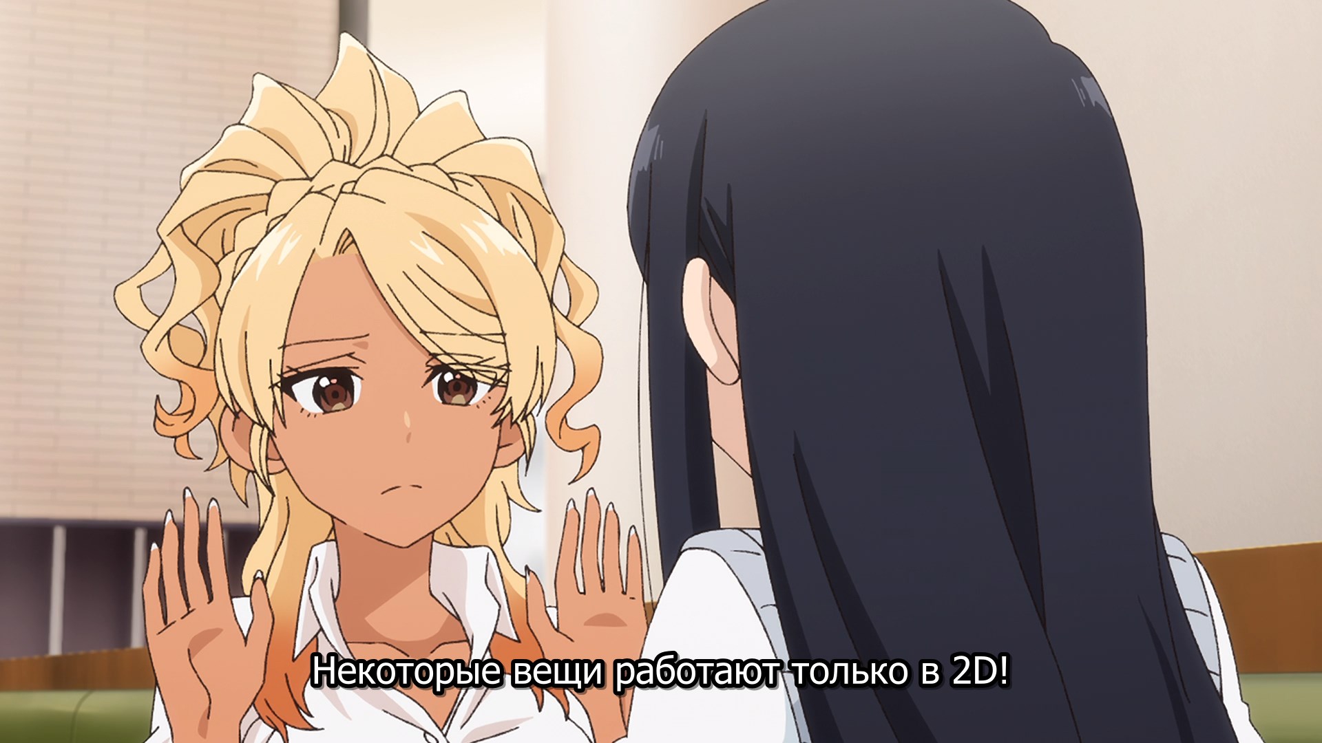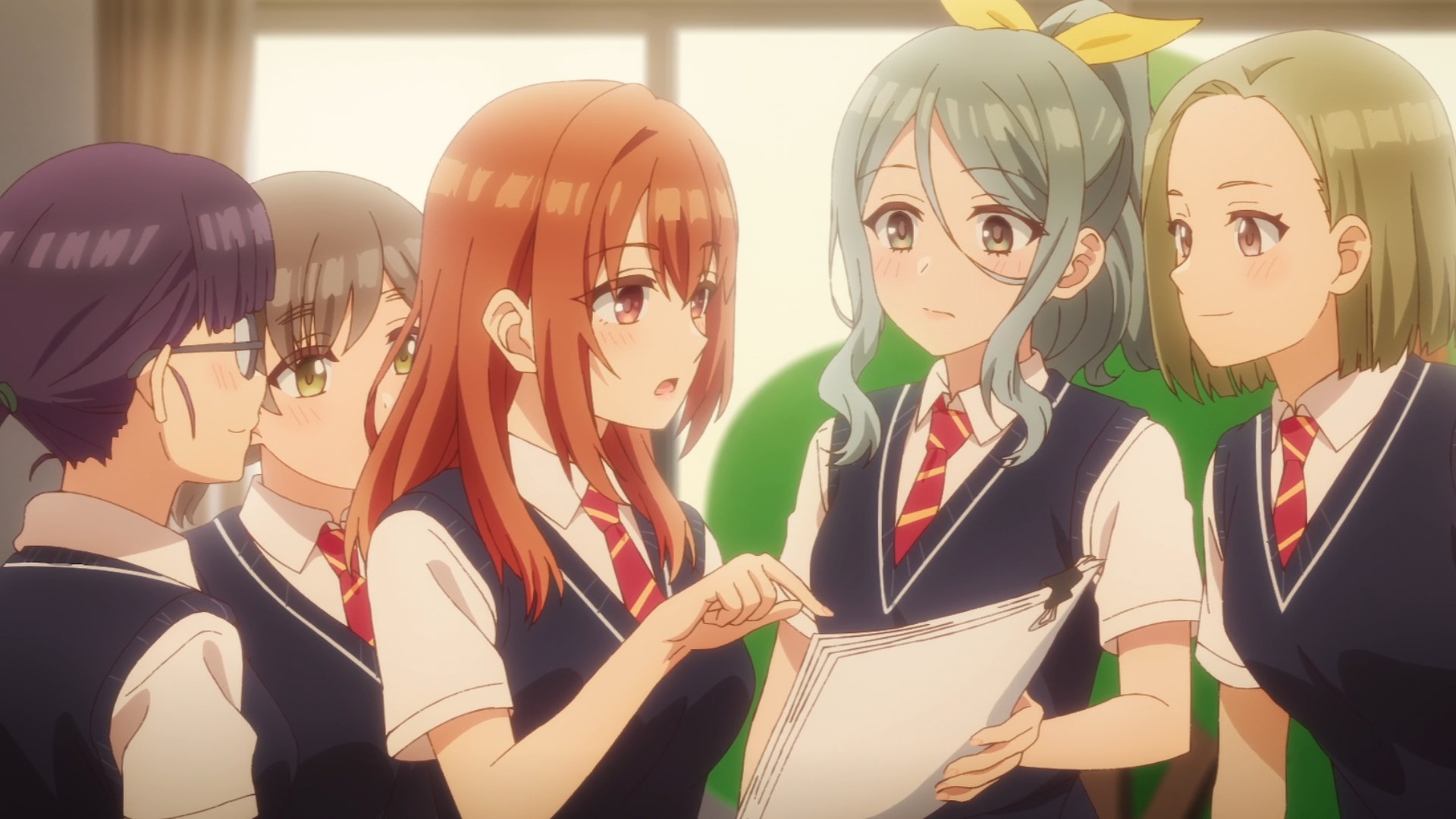 Делают точно так же как в том тайтле про руzzняху Алю-сан — вместо заявленных фансервисного слопа и лавстори, забили хронометраж какой-то бытовой херней, отчего девки отвалились куда-то на 2-3 план. Только в Але выборы были, а тут школьная театральная постановка.