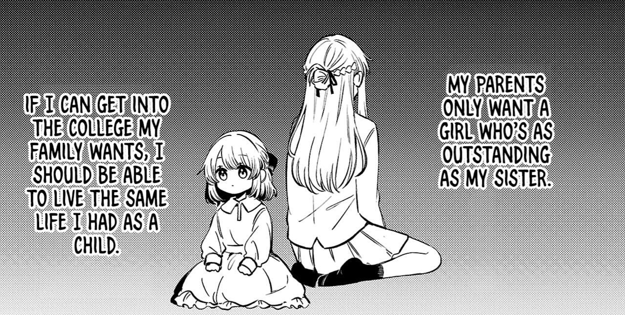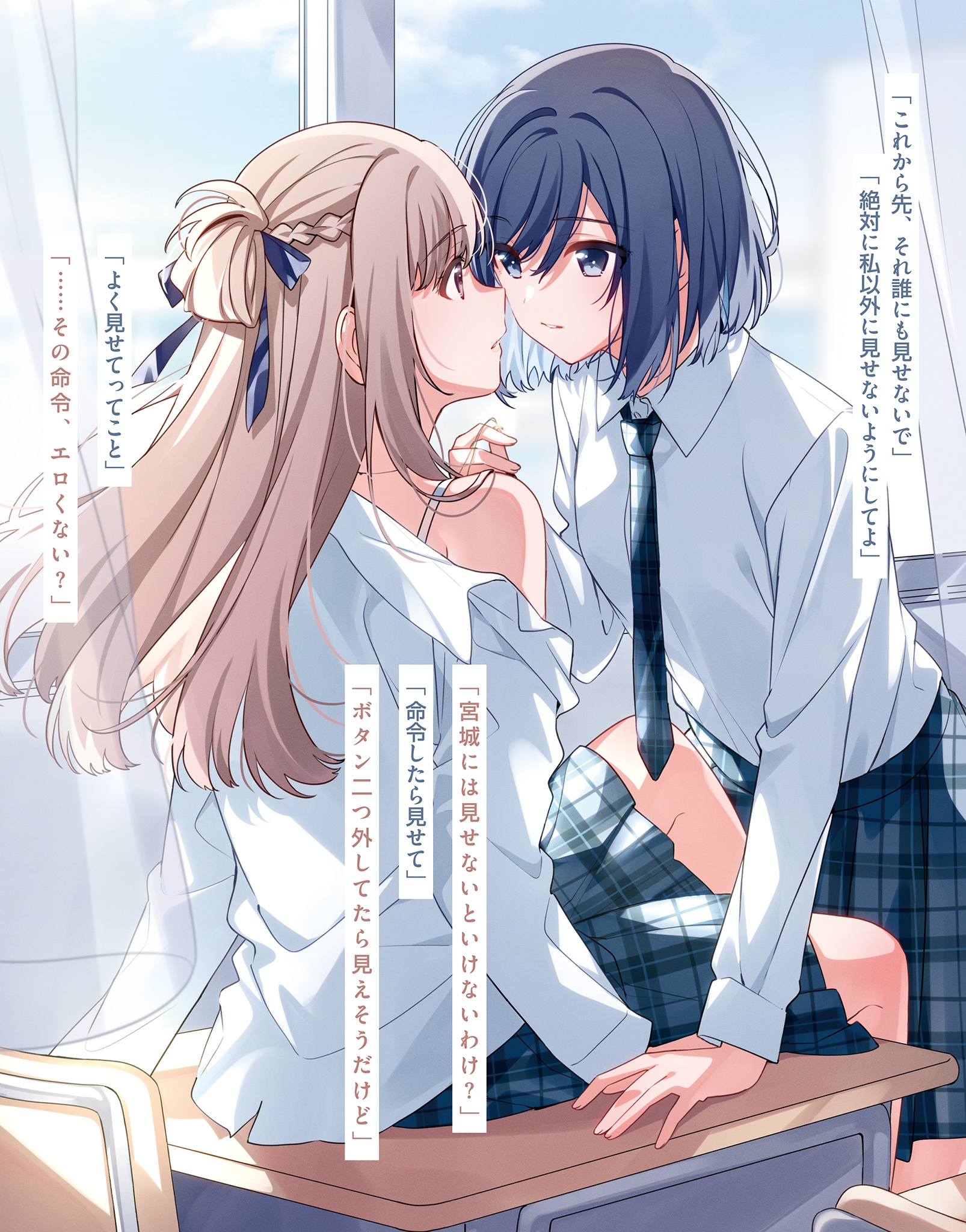 >Her hand, which traveled down my body, eventually made its way to my thigh. I could even feel her through my clothes. >It felt disgusting and ticklish at the same time. >To me, Miyagi’s touch had always felt like that. But before I even knew it, somewhere down the line, a different feeling began to emerge – one that shouldn’t be allowed to exist. >「Stop it, Miyagi.」 >Evenifthe way Miyagi was touching me was “just like usual”, I couldn’t let this go on any longer. But it didn’t seem like she had any intention of stopping. Instead, she continued to touch me.