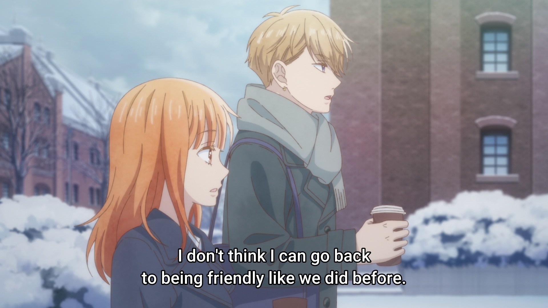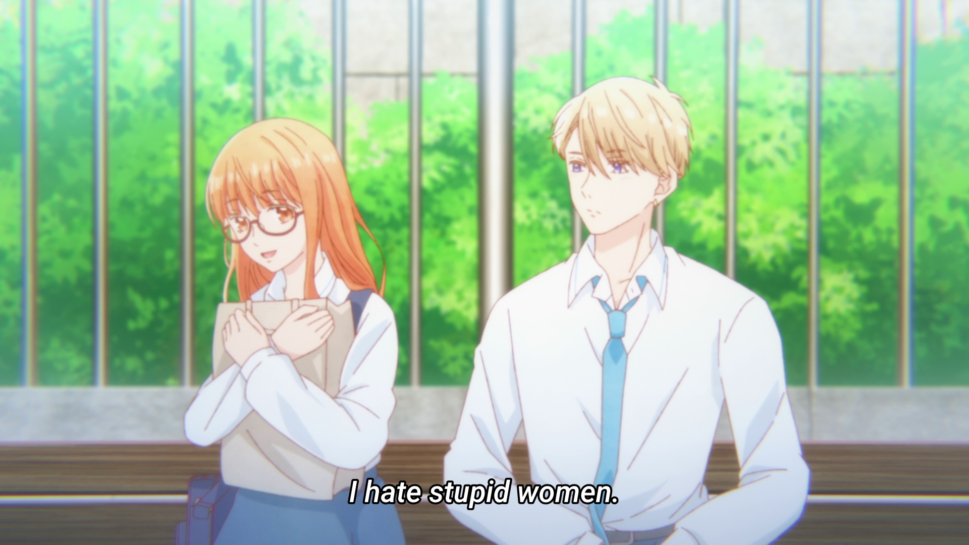 1.) Прикольно что не очередной слоп про дурачков, которые 300 глав не могут начать встречаться. 2.) Не прикольно, что придется смотреть 12 серий любоваться тян, у которой есть ПАРЕНЬ.