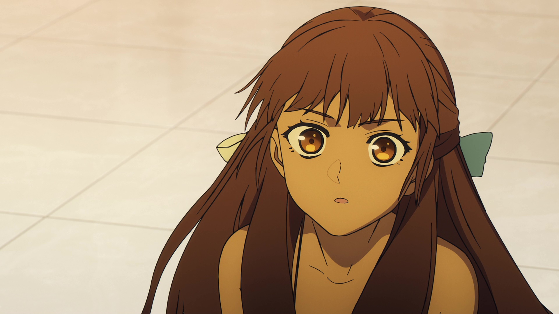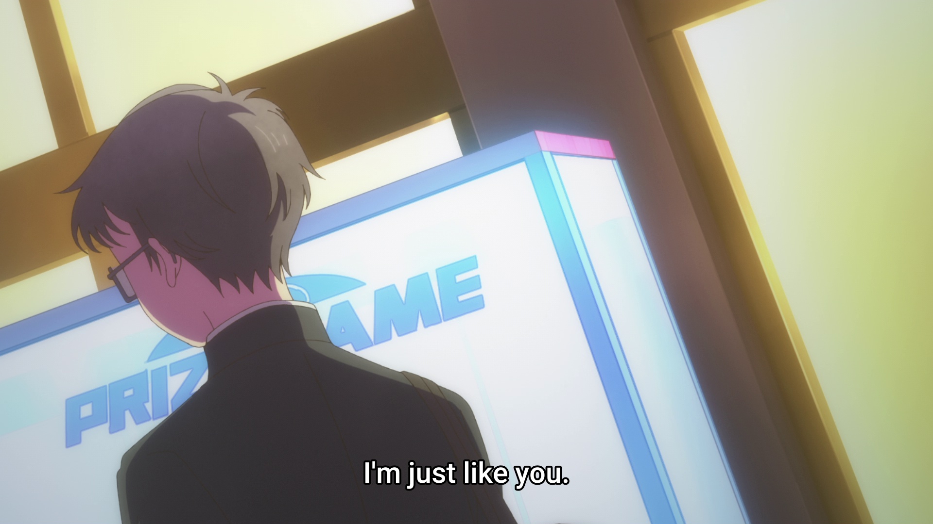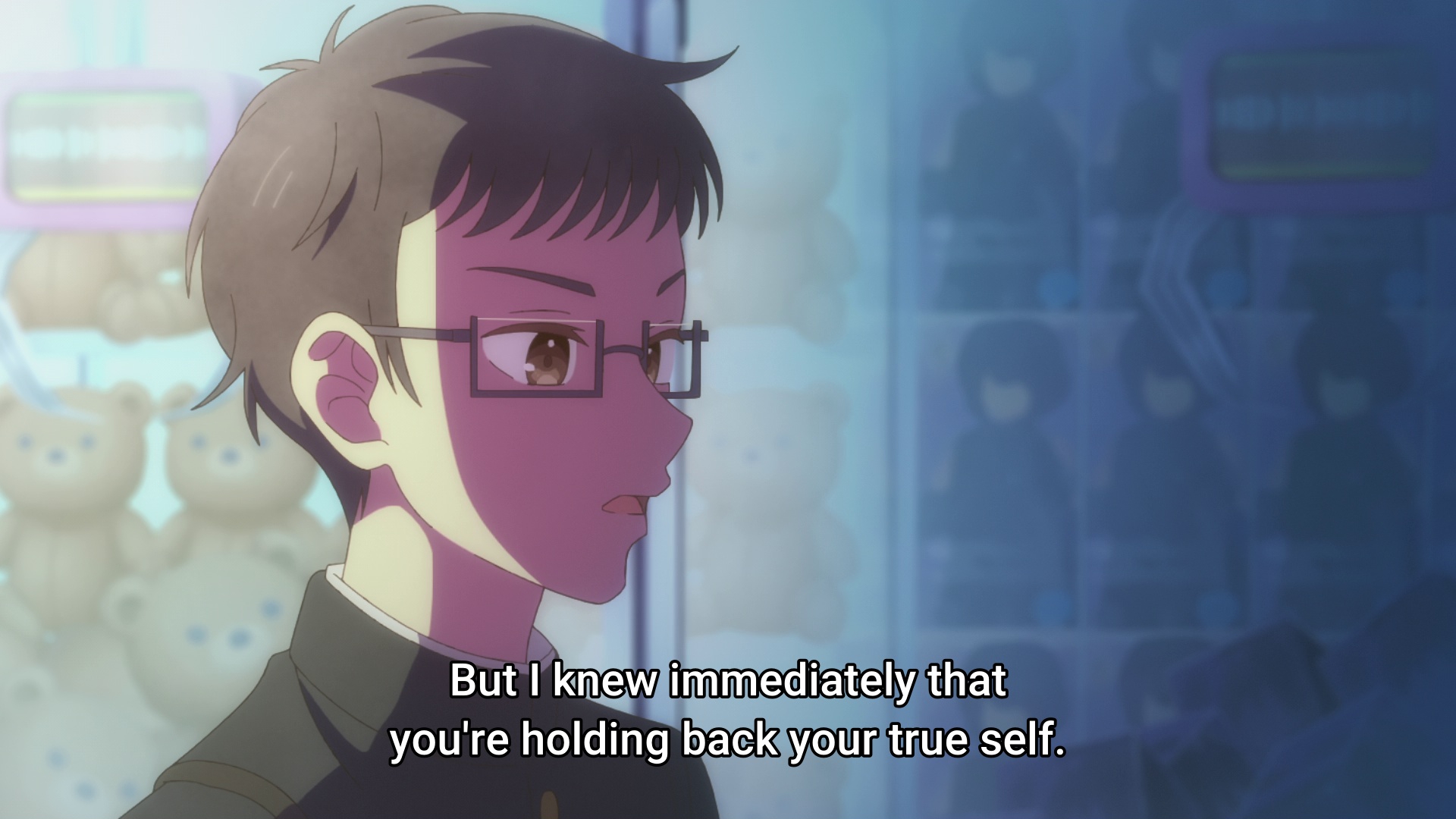 >「Give the necklace back.」 >She said as she yanked on the charm so hard I genuinely thought she might break it. >I immediately pulled the towel off my eyes. >This time, I managed to get it off before she could stop me. >The Miyagi in front of me had her brows furrowed. >Her expression was full of displeasure—but also looked like she was about to cry.