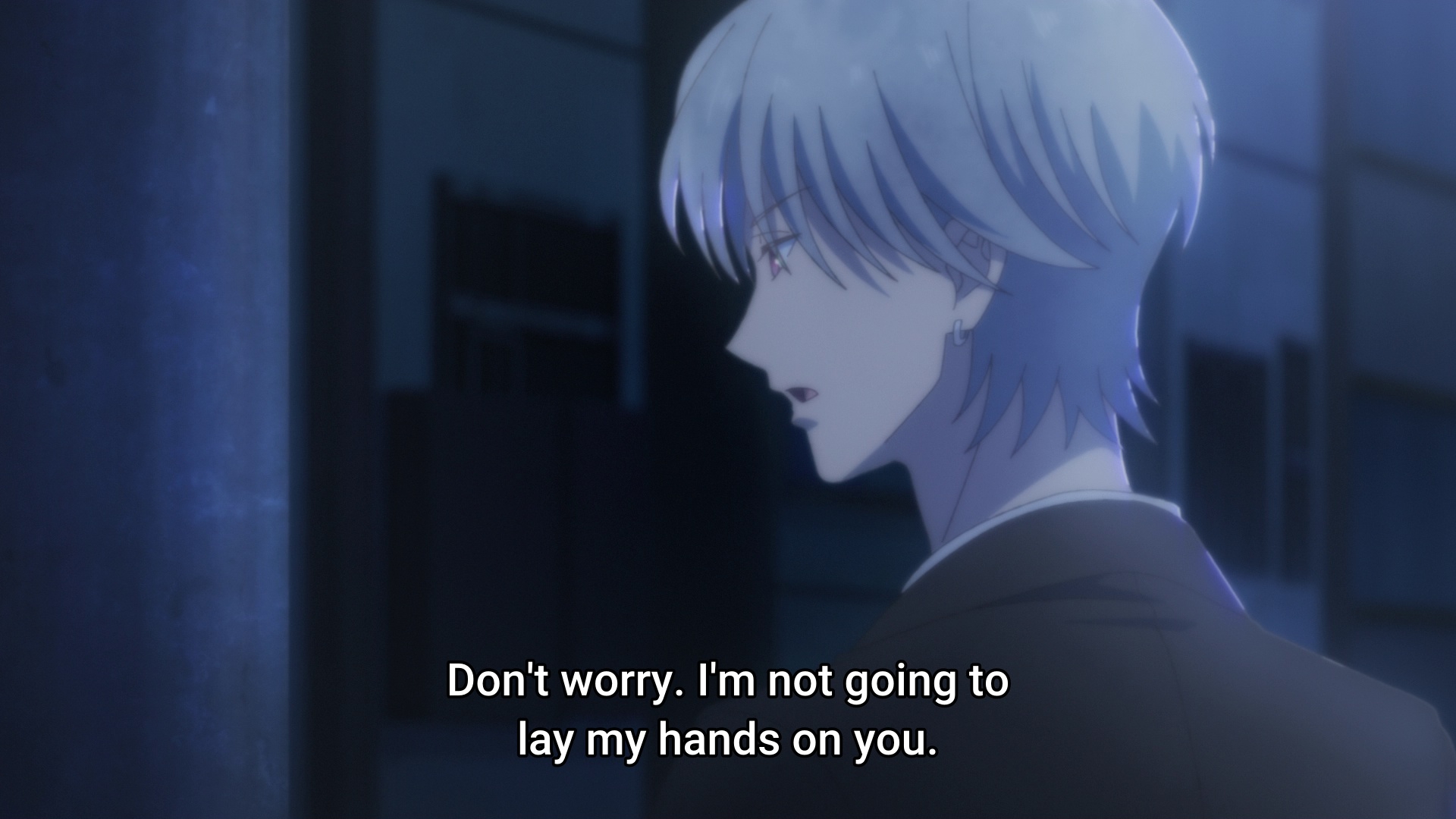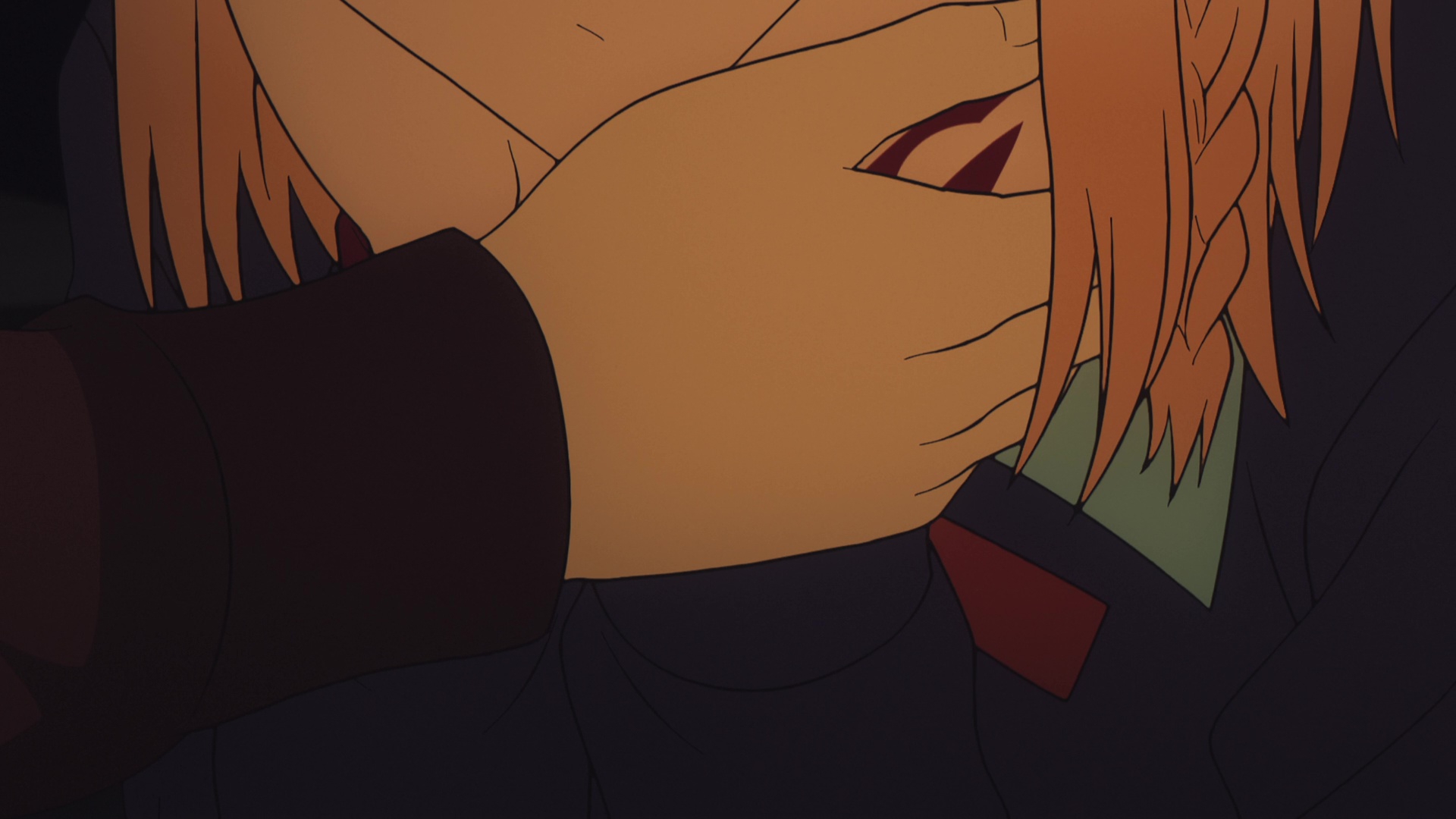 >She avoided my gaze, but she didn’t look particularly upset either. When I pressed my lips to her palm, her arm twitched slightly, and I slid my tongue between her fingers. >「Sendai-san!」 >Miyagi, who rarely raised her voice, exclaimed loudly as she smacked my arm. Then, she dug her fingernails into my uniform. >The dull pain made me let go of her hand, and she immediately pulled out a tissue from the crocodile-covered box, wiping her fingers. >I had seen her do this many times before, and it had never bothered me. >But for some reason, seeing her do it today made it feel like she was trying to wipe my entire existence away. >It irritated me. >No, more than that—it infuriated me. >I reached out, brushing my fingers against her neck. Miyagi flinched back slightly, and even that small reaction was enough to set me off. >I grabbed her and pulled her close, pressing my lips to her cheek. >She’s definitely going to resist. >Or at least, that’s what I thought. >Instead, Miyagi wrapped her arms around my back, pulling me in even closer than necessary. >「… Miyagi?」 >But instead of replying, she blew air into my ear before pressing something hard against it. I immediately recognized it as her teeth and could already tell what was coming next. Before I could pull away, Miyagi bit down. >「Ow!」 >I exclaimed, but she didn’t let go. Instead, her teeth sank in deeper, sharp pain shooting through my ear as if she was about to tear it clean off. I grabbed her by the shoulders and pushed her away. Наброс на Мияги.