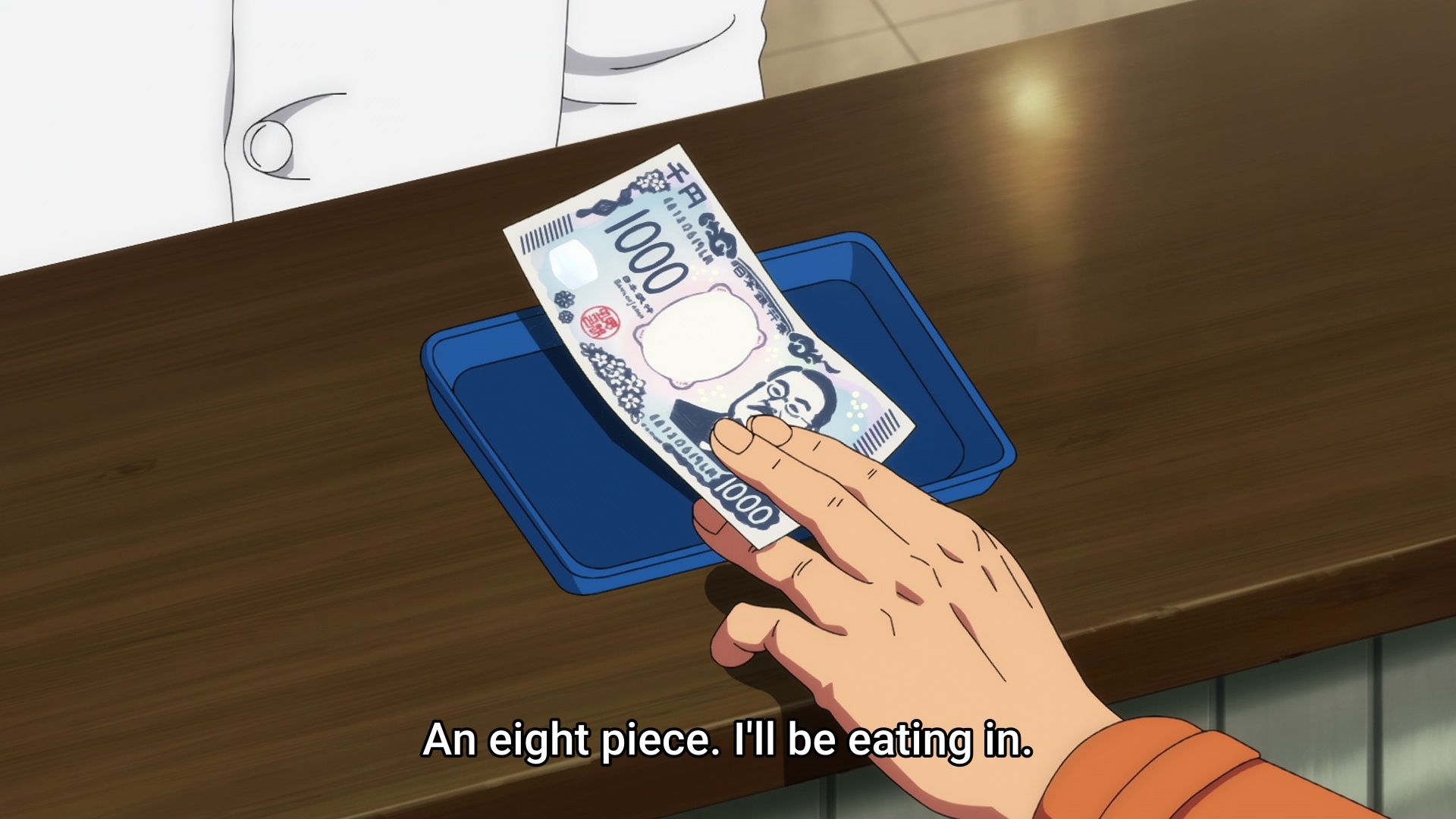>«Сендай-сан». >Наши отношения безвозмездно. >Я попыталась представить себе что-то подобное — что-то, что могло бы произойти прямо сейчас, — и на мгновение засомневалась, стоит ли отдавать ей пятитысячную купюру. >Но я быстро отбросила эту мысль и поднесла купюру к её лицу. >«Вот».