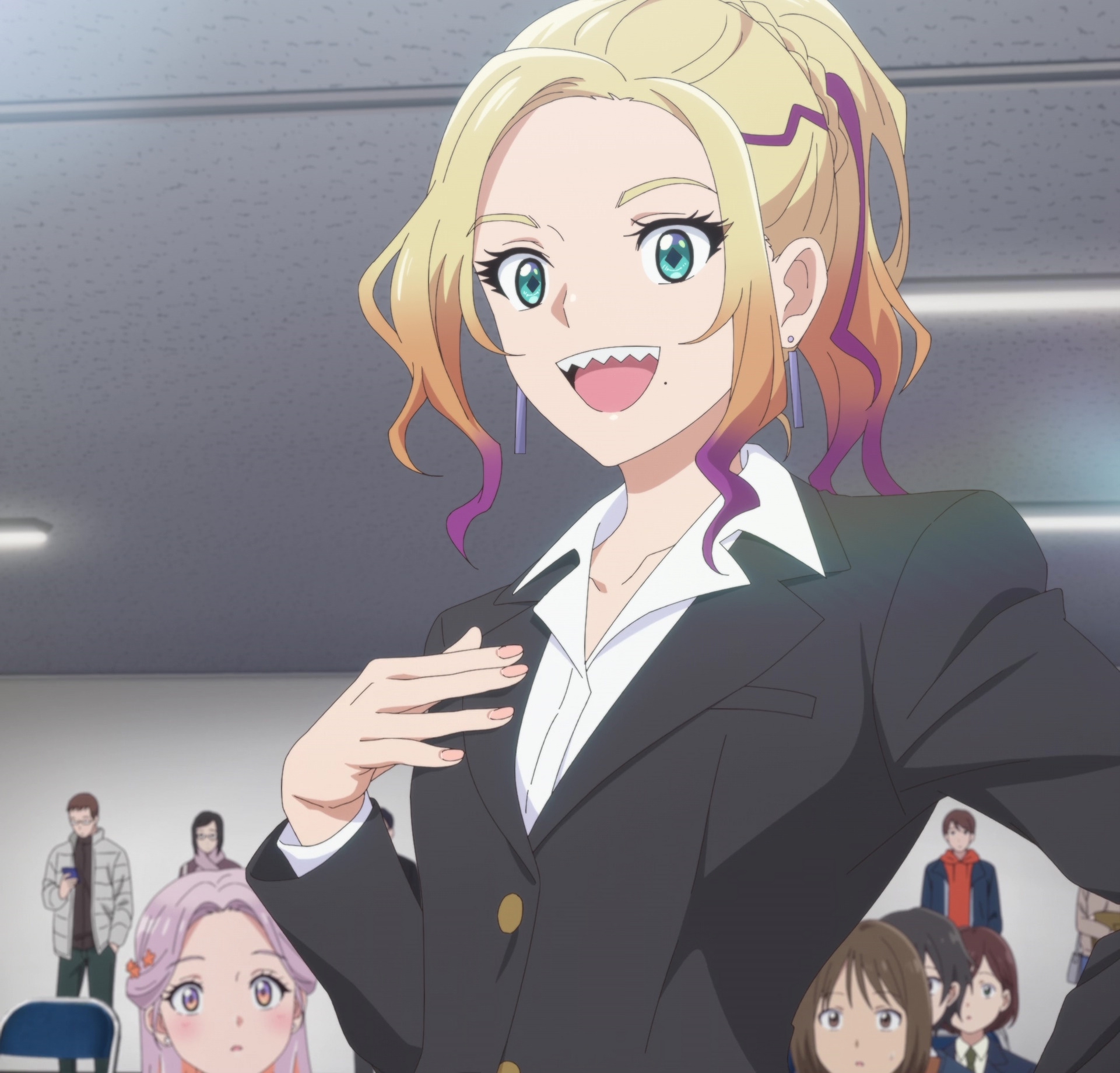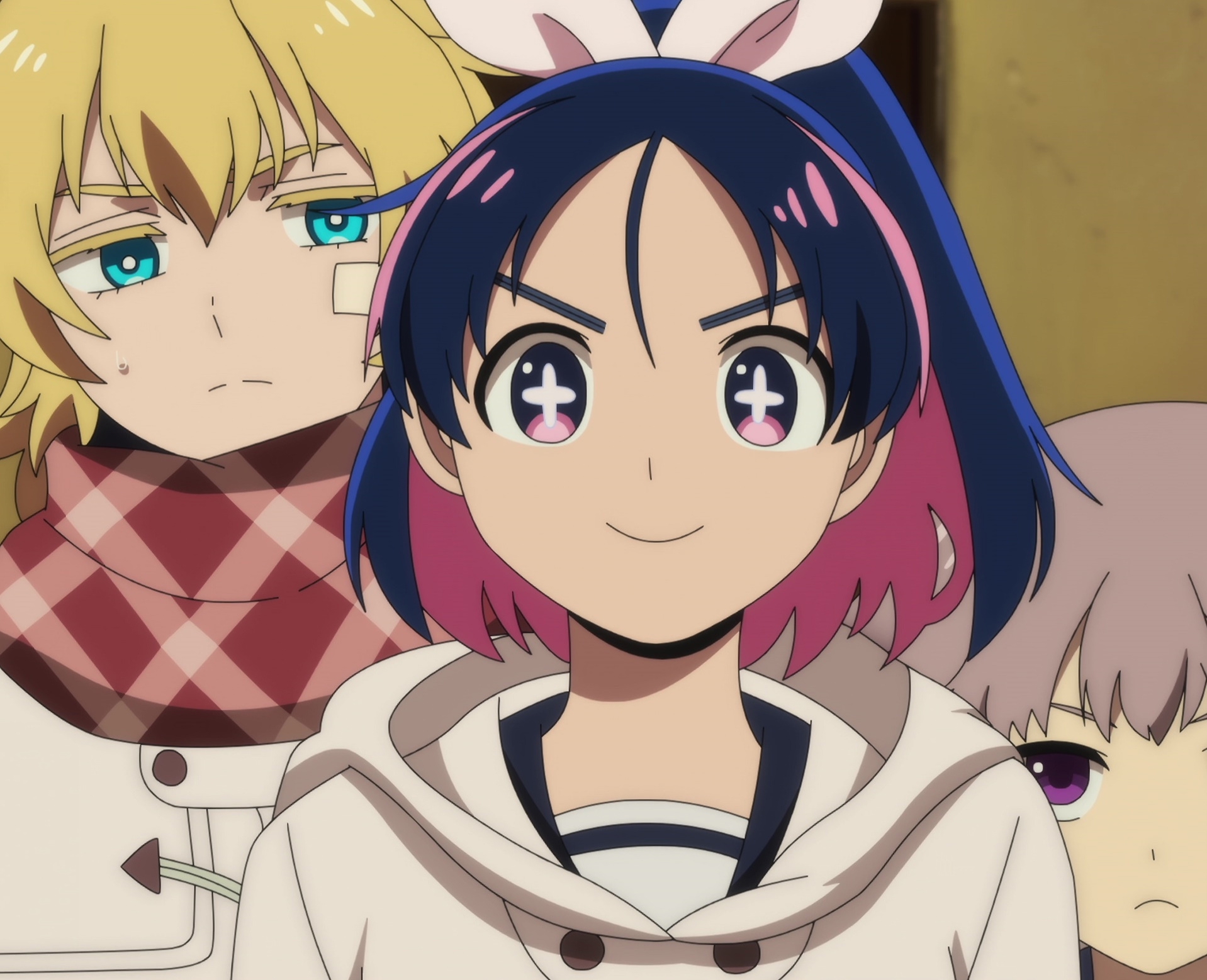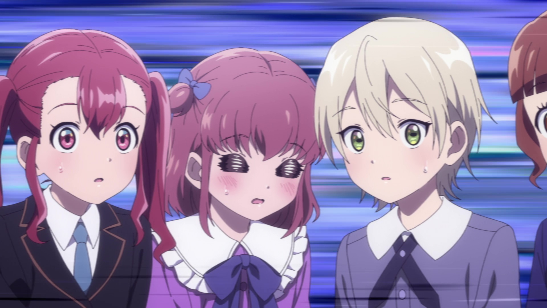 Барабанщицу НЯЯ^_^МУ нужно пиздить и гнать, у неё какое-то дохуя своё мнение и своими действиями прямо подрывает деятельность и политику группы, охуел с её лицемерной телеги про, что надо думать о других людях, когда она все четыре серии делала только то, что выгодно лично ей, вовред другим участникам. Сакико хорошая девка, но явно недотягивает до требований к руководителю поп-группы тупых пёзд, её никто не уважает, с ней постоянно спорят, — а что она сделает с другими тёлками? отпиздит их? — но её просто искренне жаль в этой ситуации. Третья баба вообще замкнутый аутист (будто солистки МайГо нехватило) и у неё начинаются шизофренические приходы и раздвоение личности из-за срачей этих сук. Юмири и Юика лапушки няшочки адекваты, ведут себя как профессионалы среди этого балагана.