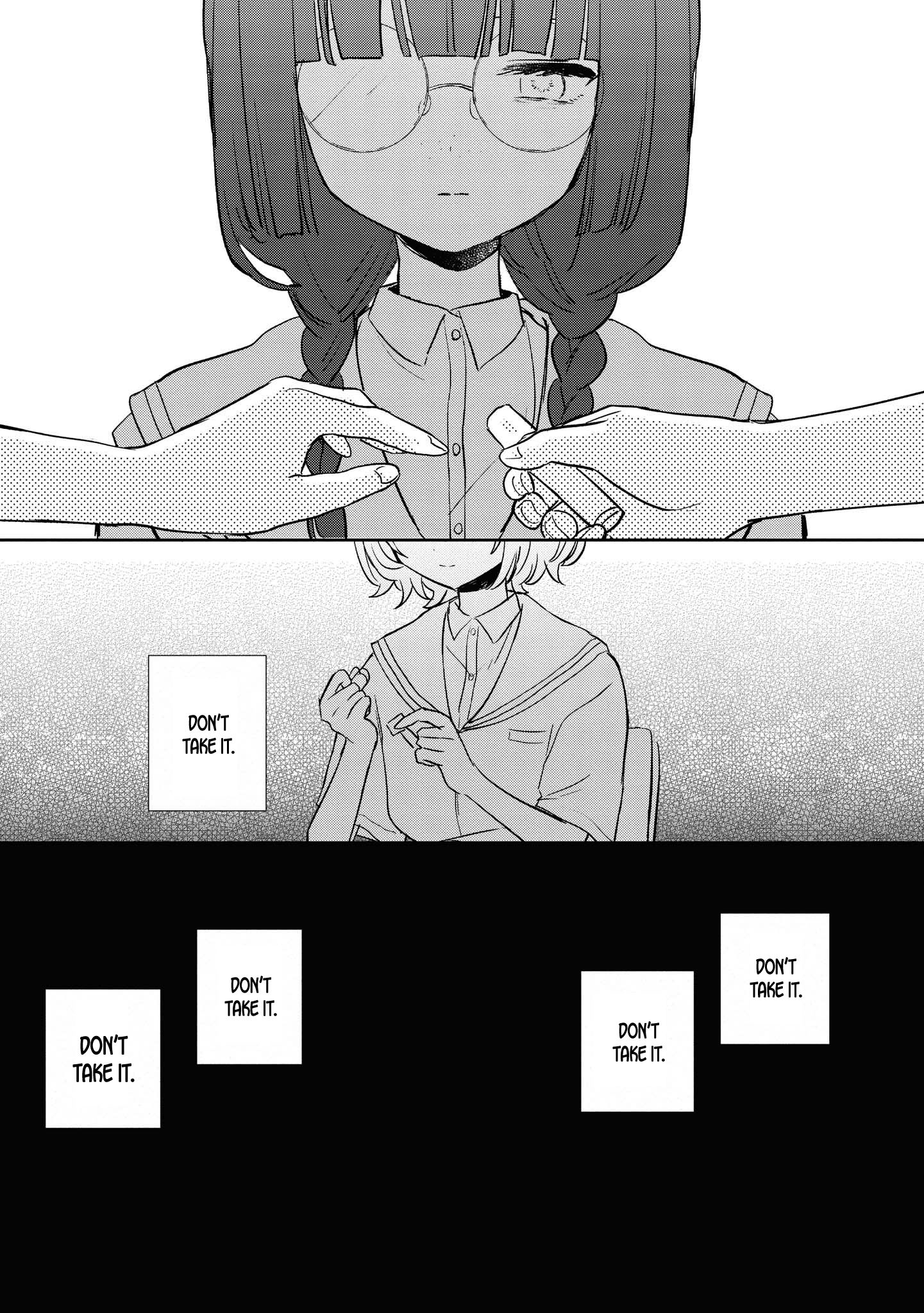 >I wish I could’ve touched her more. >I should’ve touched her everywhere I could see. >I should’ve felt the shape of her chest before she had the chance to hug me. >If I had done that, though, the mark under my palm right now might’ve ended up being something worse—more than just a bite, maybe a real wound, something that bled. >And I would’ve been okay with that. >If it had turned into something that bad, I’d skip school and ask Miyagi to come visit me. Then, while she was there, I’d use that chance to kiss her─ >「… I should study.」