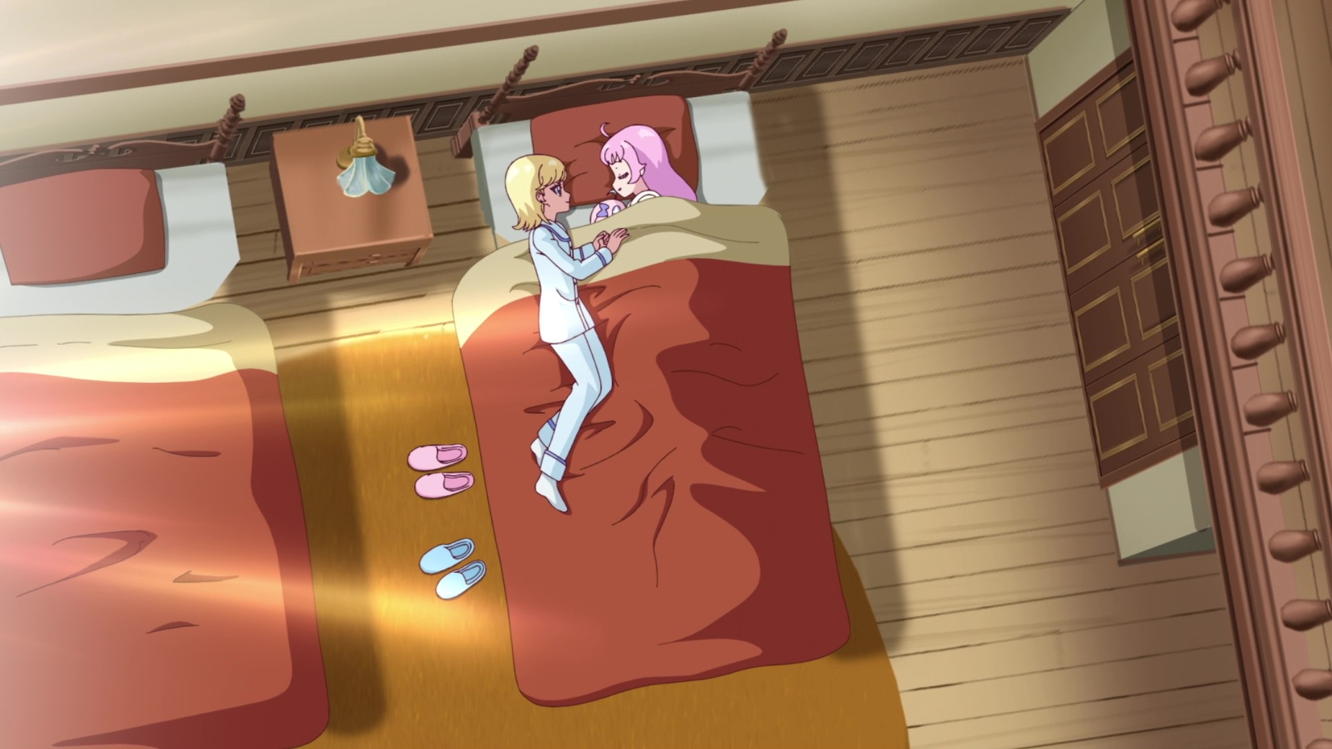 >Внезапная перемена в настроении Тамамо заставила Юки проявить свою дьявольскую сторону. >«Почему бы нам не поспать вместе?» — предложила она. >«А?!…Н-но…» >Лицо Тамамо побледнело — это дало Юки возможность нанести удар. >«Что-то не так?» — спросила Юки, притворяясь ничего не понимающей. «У меня всего один матрас, так что другого способа согреть нас обеих нет». >«Нет, но…», — пробормотала Тамамо. >Юки легонько толкнула девушку за плечи, заставив её упасть на матрас. Затем Юки накрыла Тамамо одеялом, а потом сама легла под него. >Теперь они спали вместе, как это иногда называют. >«П-подожди, Юки…!» >Тамамо попыталась вырваться из-под одеяла, но Юки крепко надавила на девушку, чтобы помешать ей. >«Разве ты не говорила, что хочешь остаться рядом со мной? Почему ты так против?» Юки спросила, используя слова Тамамо, сказанные ею ранее, против неё. >Тамамо опустила глаза, словно пытаясь придумать ответ. Покраснение её светлой кожи ясно давало понять, что она покраснела. Какая милая, подумала Юки. >Получив согласие Тамамо — или, скорее, после того, как Тамамо перестала сопротивляться, — они легли спать. Тамамо крепко зажмурила глаза и замолчала, словно пытаясь как можно быстрее заснуть. Юки не отрывала глаз, внимательно наблюдая за девушкой.