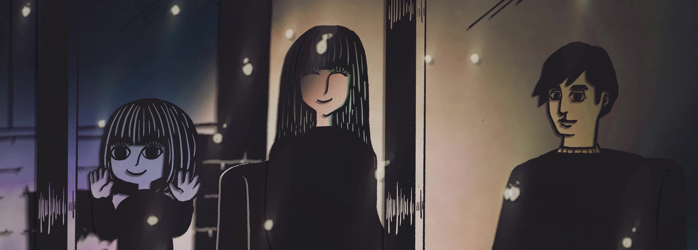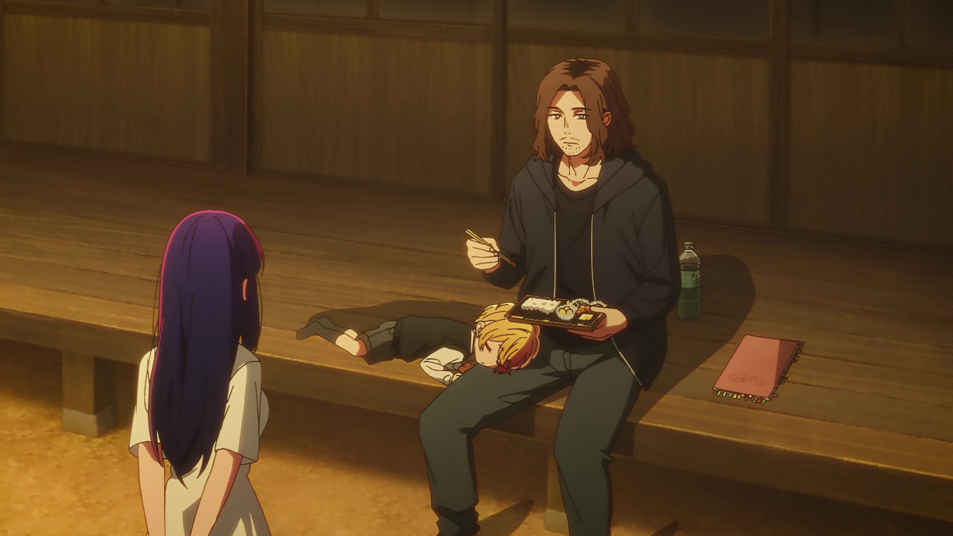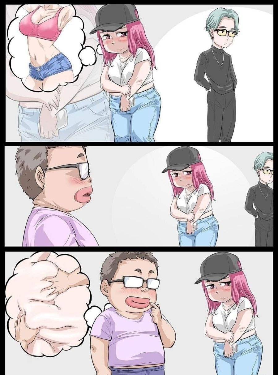 Эээээ погодите, это же школьница и дяденька постарше, а его сестра в 90-е попала с классом на остров, выжила и стала очкастым трапом. Как же я раньше не подумал о том что он не стареет.