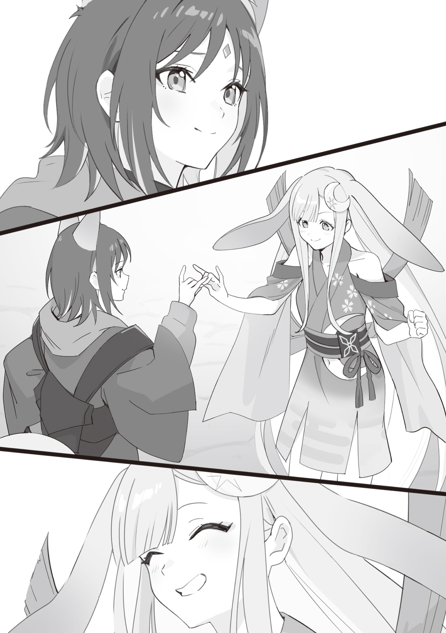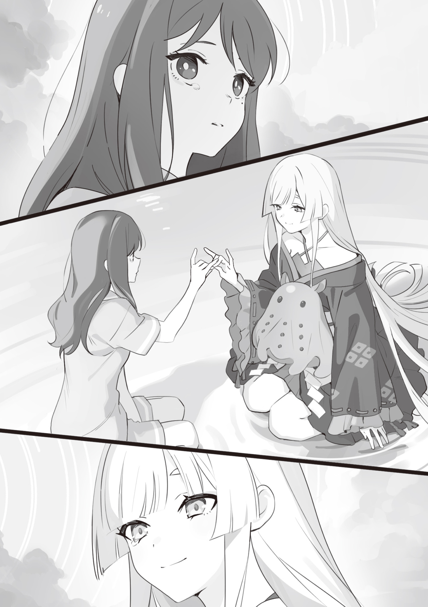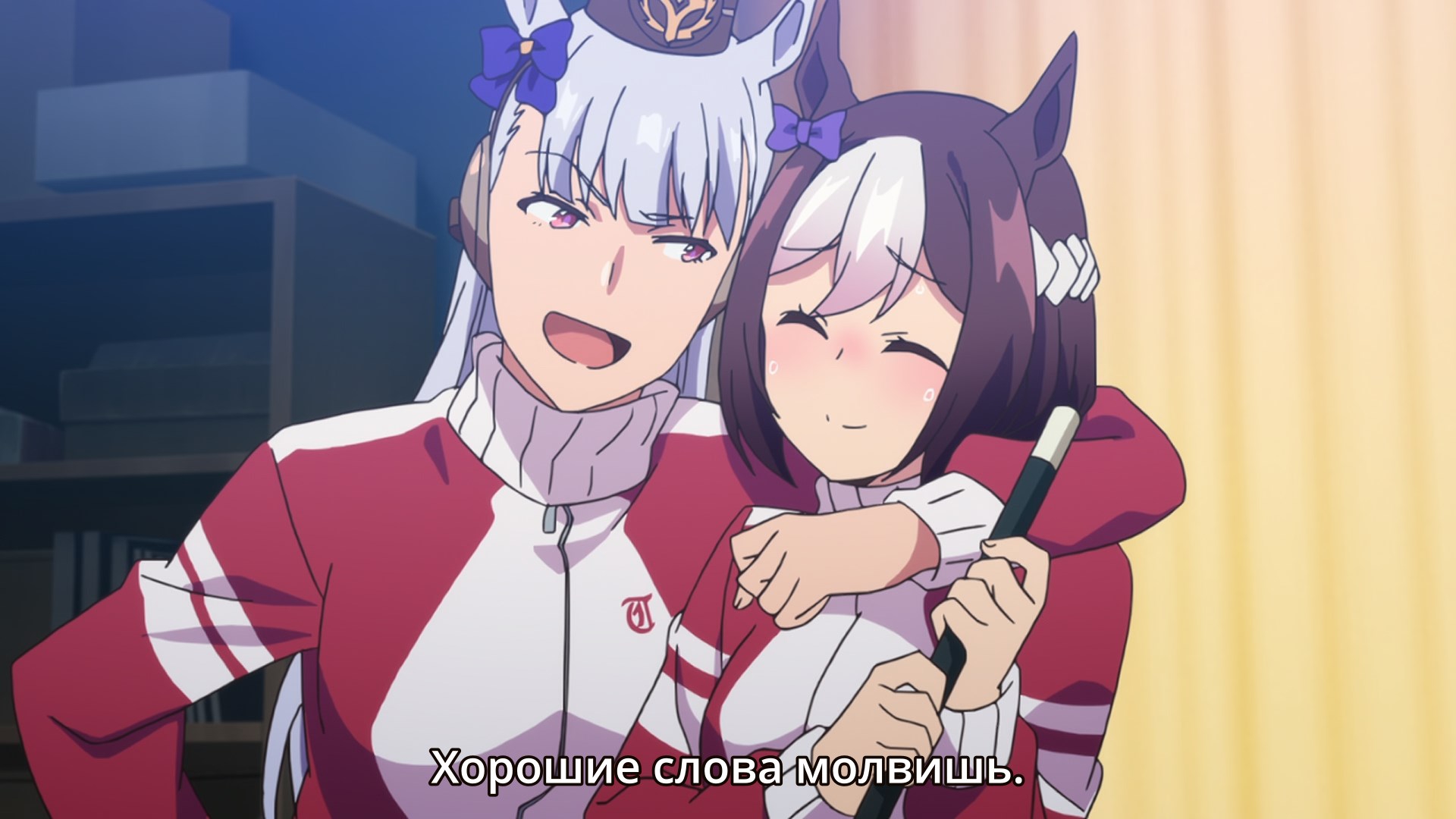 >Тамамо открыла глаза и начала беспорядочно барахтаться, казалось, не в силах больше терпеть. Однако Юки не отпустила Тамамо из объятий; напротив, ей нравилось это невероятно приятное ощущение, когда Тамамо барахталась в её объятиях. Юки чувствовала бесконечный зуд и покалывание внутри, словно их души соприкасались. Этот момент научил Юки, что обнимать другого человека приятно — особенно когда это её очаровательная протеже. >Вскоре Тамамо перестала сопротивляться и замерла в объятиях Юки. Без раздражающих движений Тамамо Юки тоже немного успокоилась.