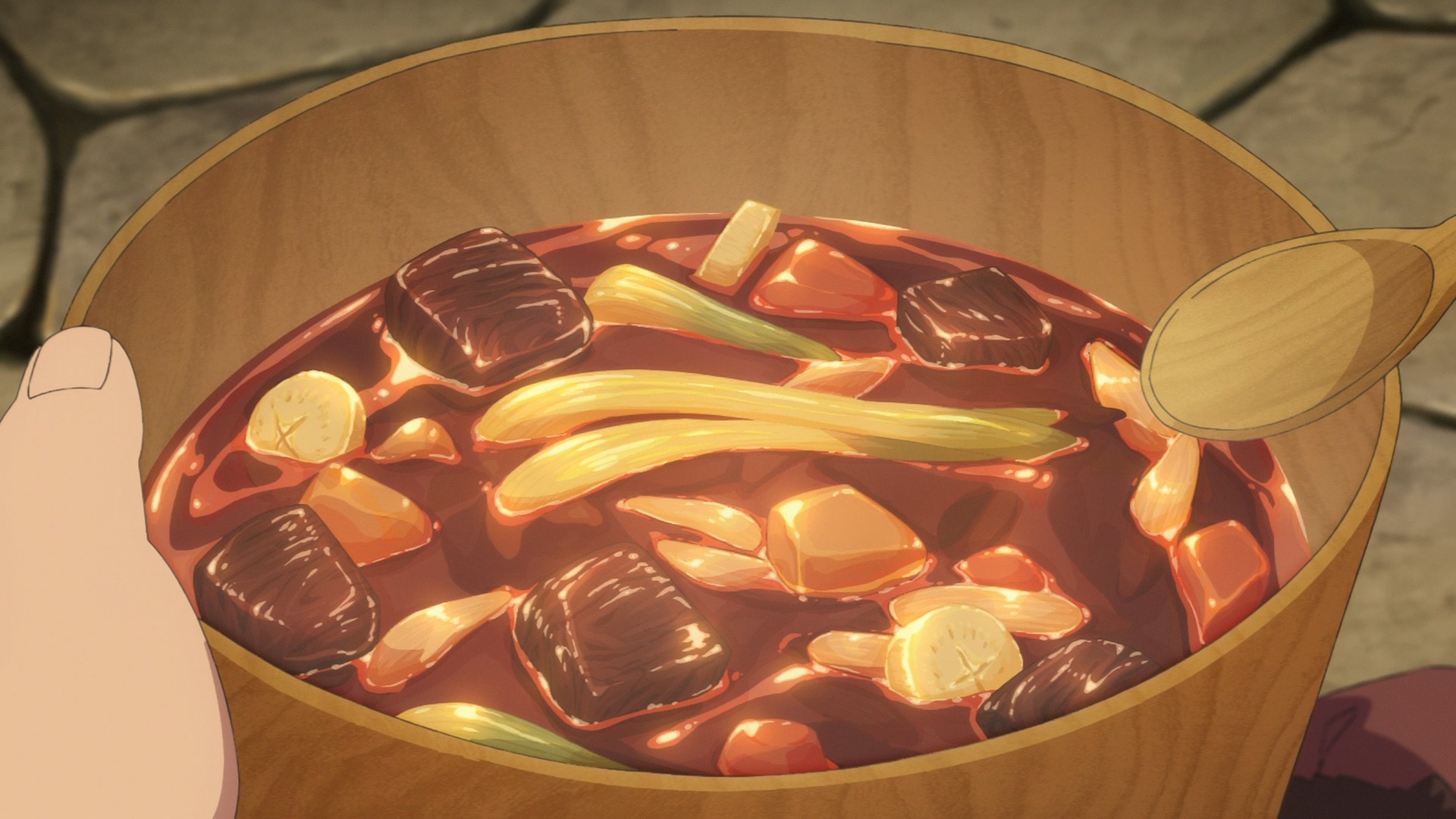 Получилось хорошо, особенно морковка даёт вкусные сладковатые нотки, но в следующий раз надо брать менее жирный кусок говядины.
