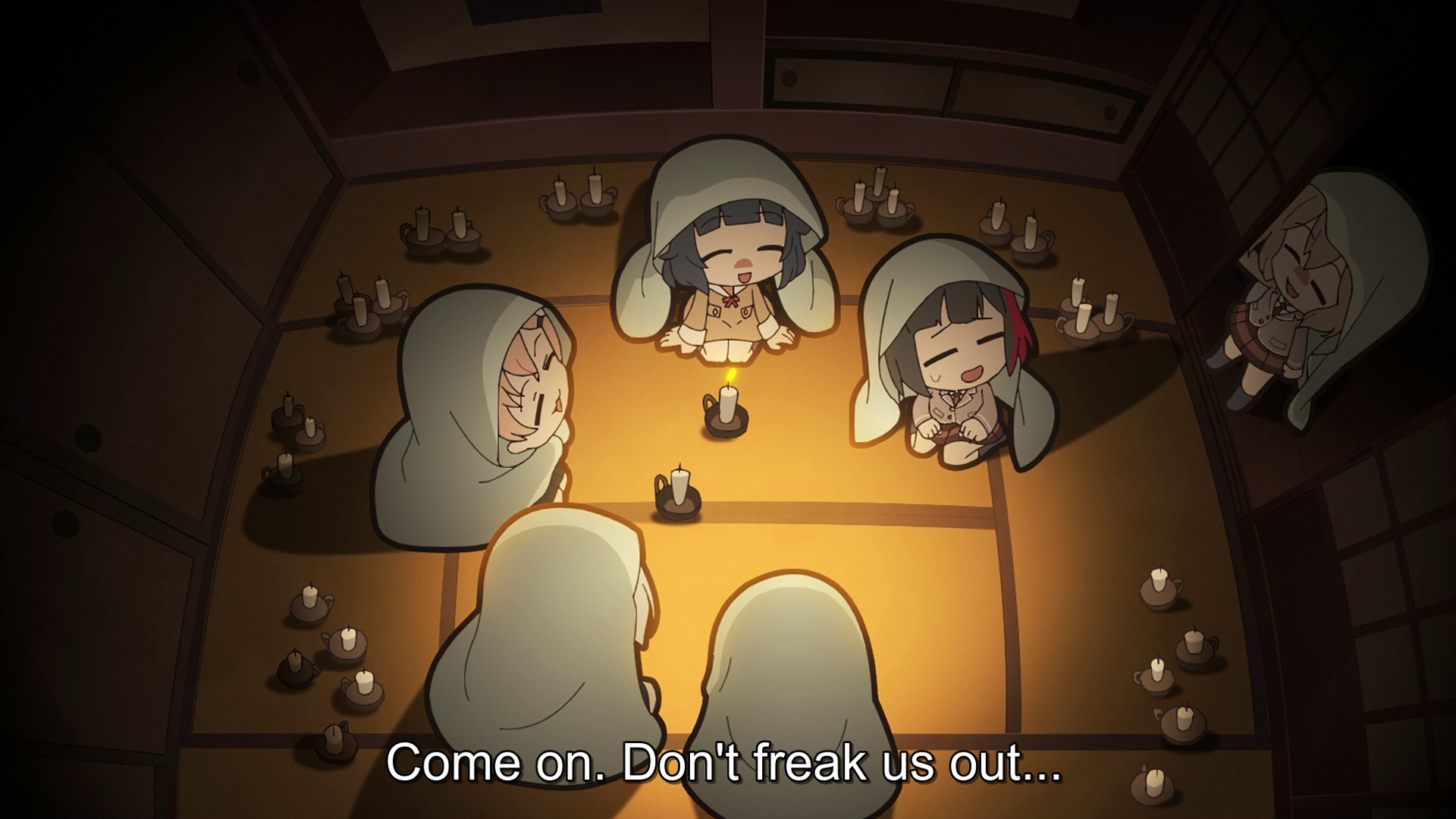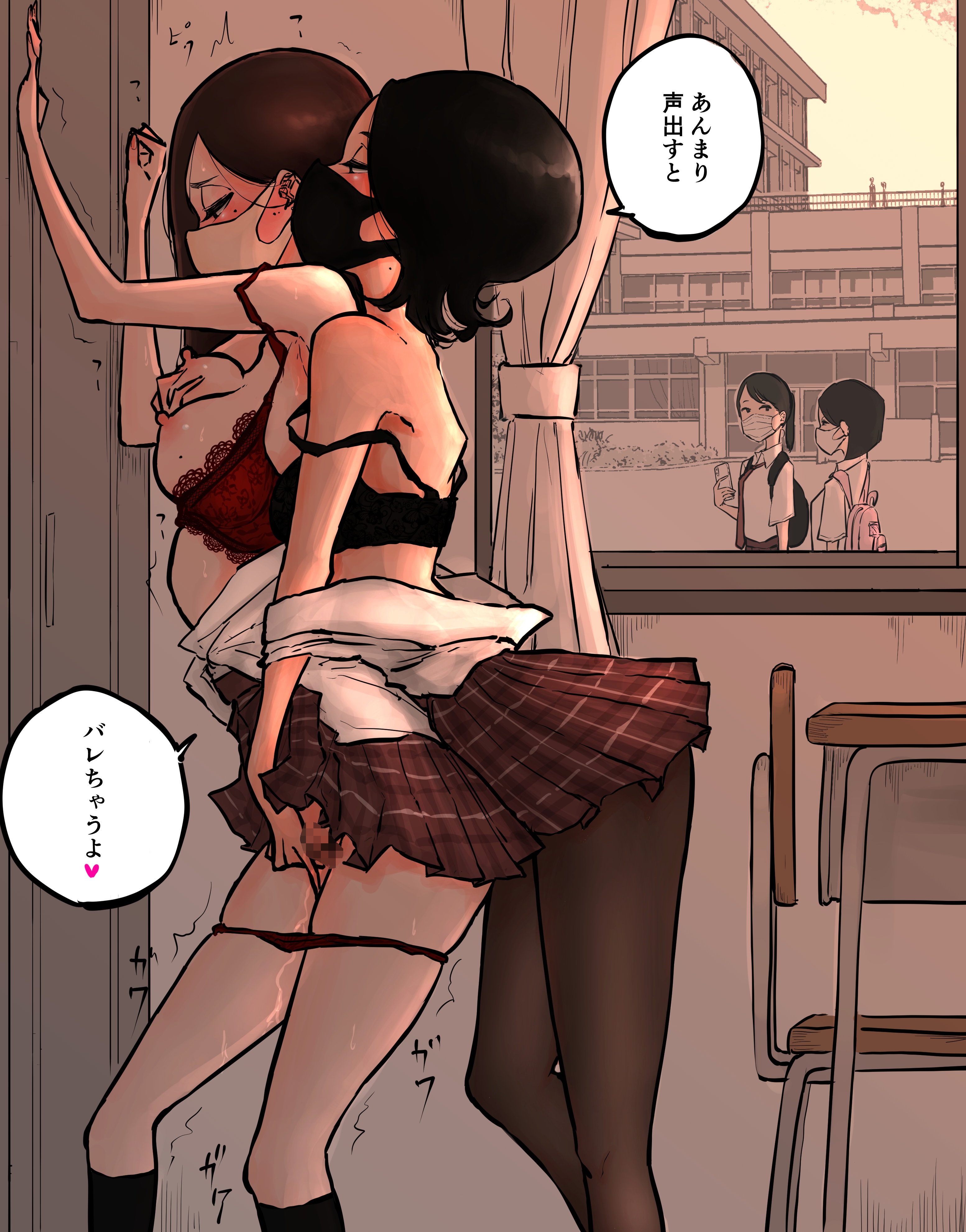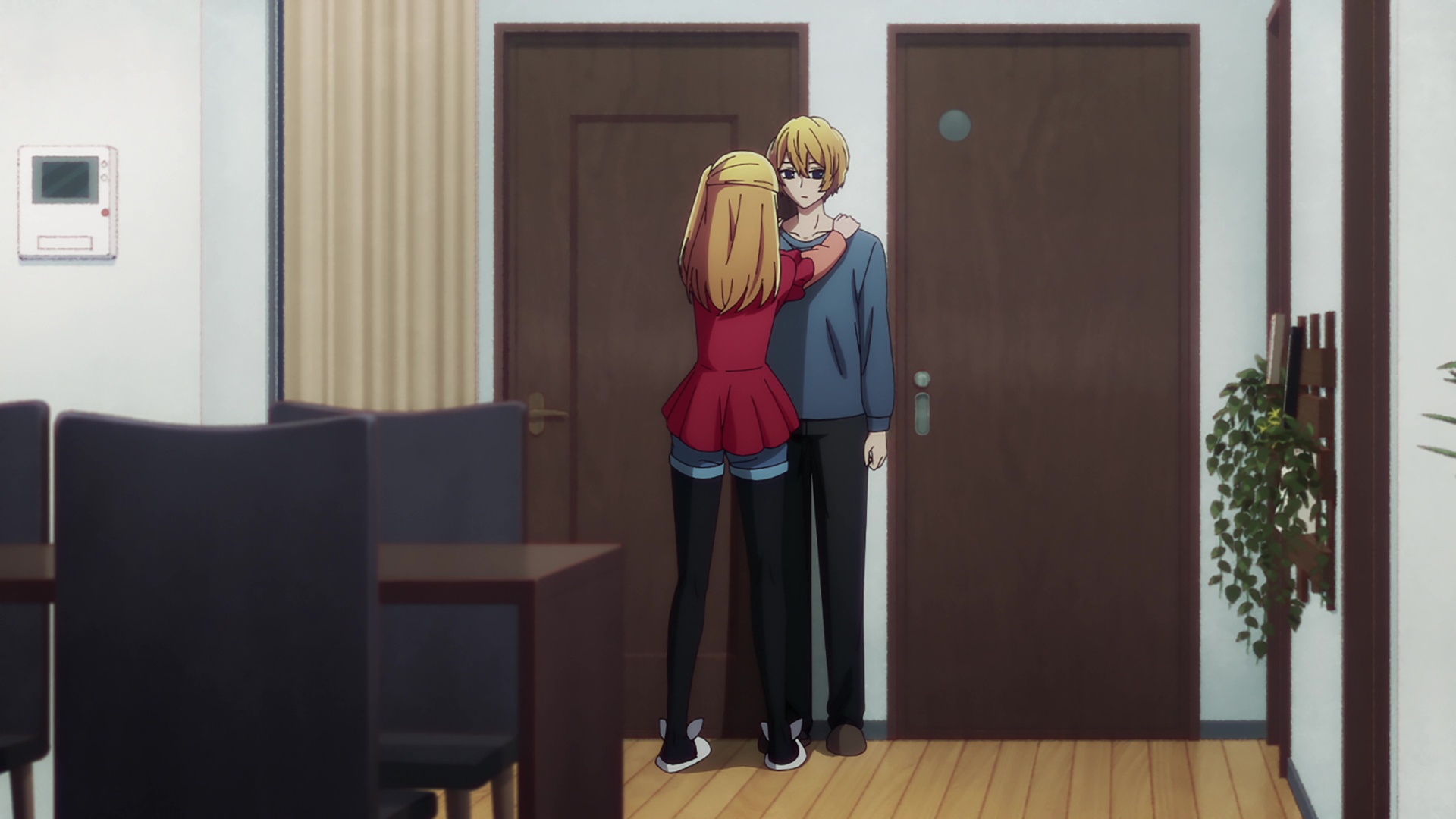 >Физически они находились довольно близко друг к другу. Они были в том же состоянии, что и утром. По всей видимости, они заснули, обнимаясь. >Юки прижала руку к ее голове. Она пробормотала: «…Мы что, влюбленные голубки?»