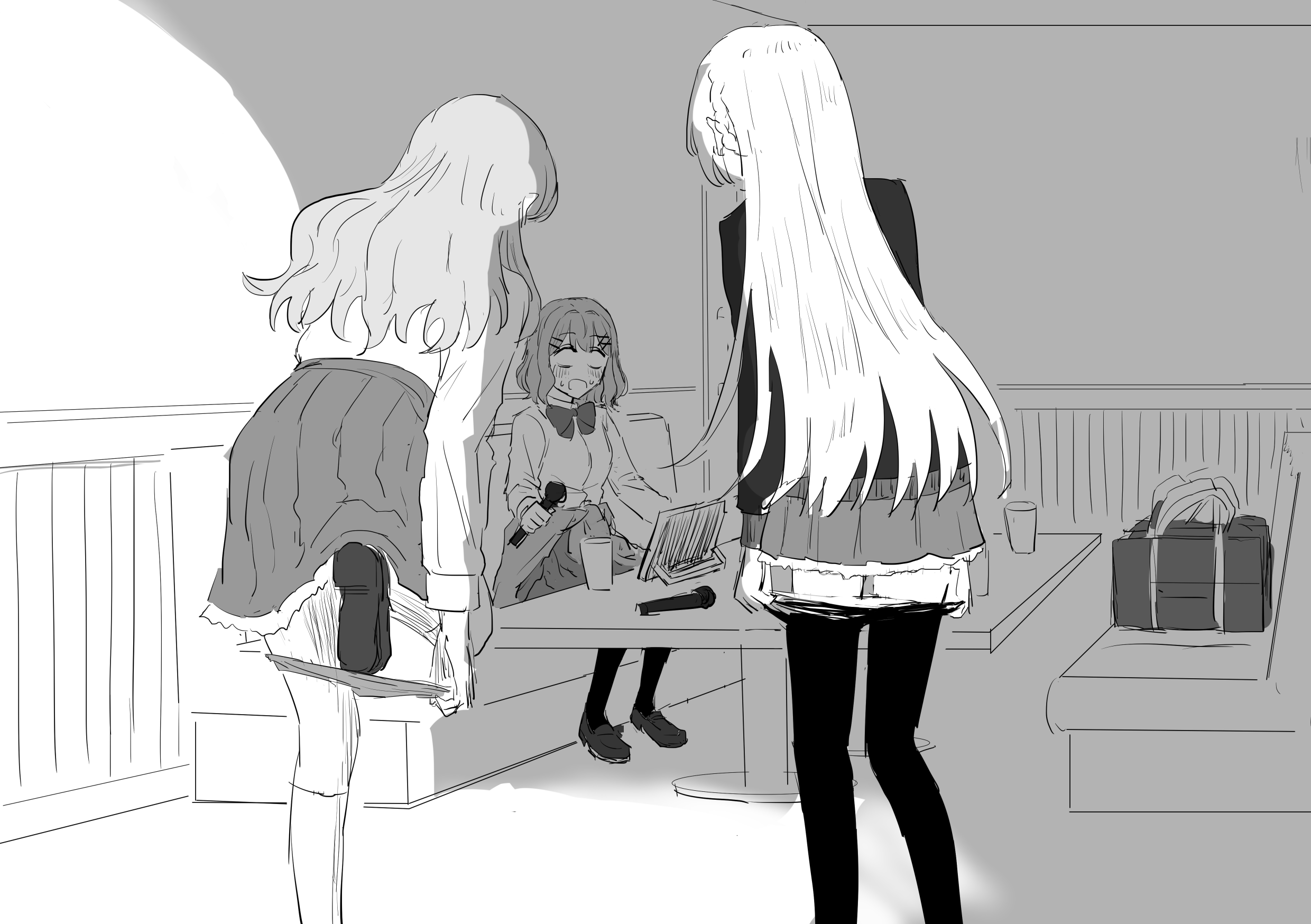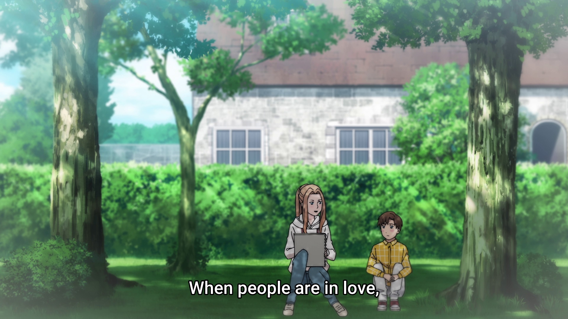Настало пожалуй время раскрыть локальный мем. Была теория, что милфа из библиотеки грумит Мицки, и вместе с ней уедет в Европу, а Химари останется с Цумуги. На самом деле они просто хорошие друзья.