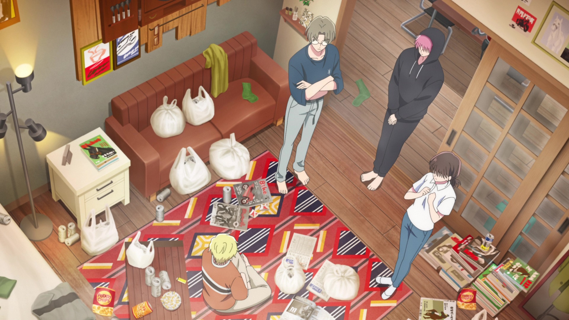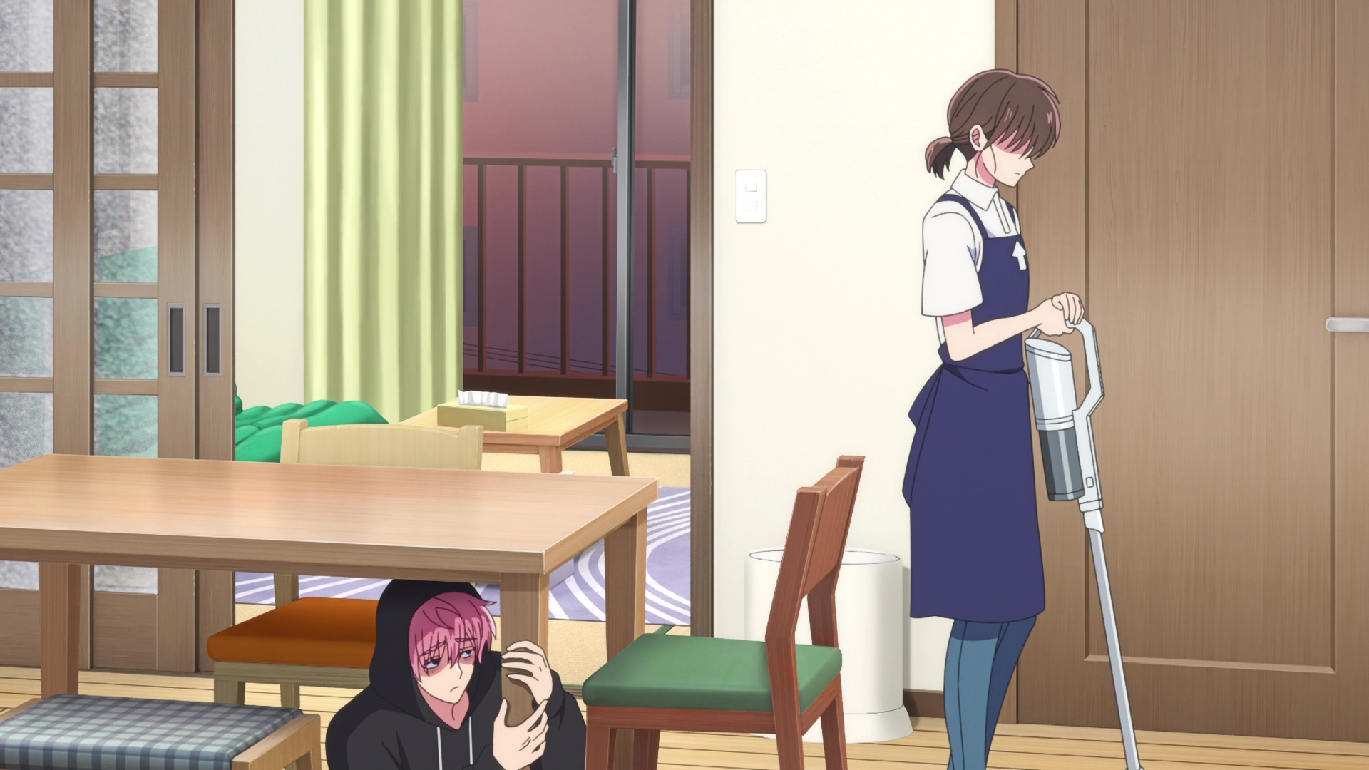 >Конечно, Юки предпочитала, чтобы её кухня была чистой. Она была благодарна Тамамо за помощь, но ей было неловко — гораздо больше, чем если бы Тамамо просто наблюдала за тем, как она переодевается. Дело в том, что беспорядок был символом её неряшливого образа жизни. >…Просто любопытно, ты смотрела где-нибудь, кроме кухни? — спросила Юки. >«Где именно?» >«Например, в ванной или туалете…» >«Нет, не смотрела… Они в похожем состоянии?» >«Конечно, нет. Почему ты так думаешь?» — улыбнулась Юки. «Но не заходи без моего разрешения. Там, э-э… плутоний, так что это небезопасно».
