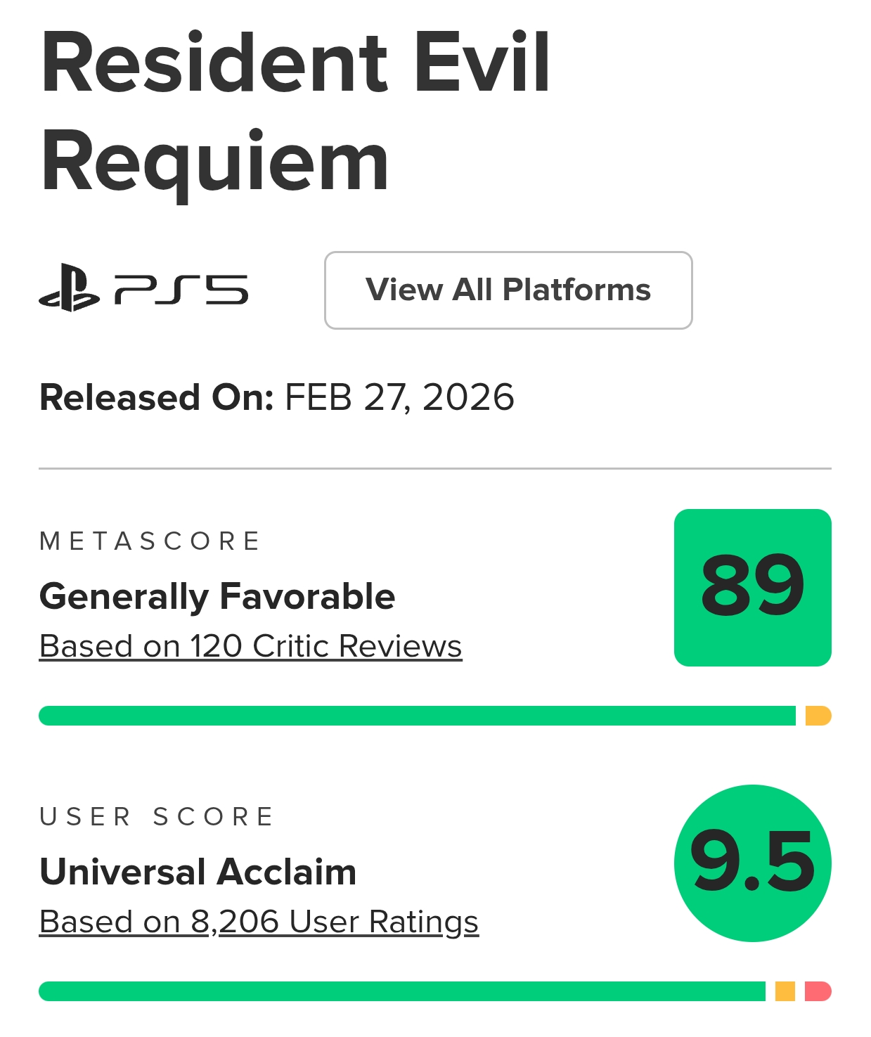 > To show how insane this is, here’s how long previous titles took to hit 5 million units: ︀︀ > ︀︀RE4 Remake: 3 months ︀︀> RE8: 5 months ︀︀> RE3 Remake: 2 years ︀︀> RE2 Remake: 1 year ︀︀> RE7: 17 months ︀︀ ︀︀> Resident Evil Requiem did it in just 5 days 🔥