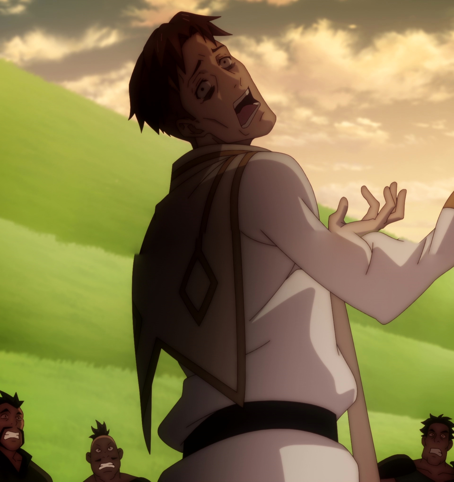 Промотал на середину — этот гомункул чмояш уже сидит за столом и погоняет организацией, которая готовилась к войне Грааля сотни нет, а старики и лица принимающие решения сидят и с тупыми ебалами его слушают.