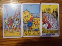 Ниже 2 пентакля, Принцесса мечей, 2 жезла, Влюбленные.