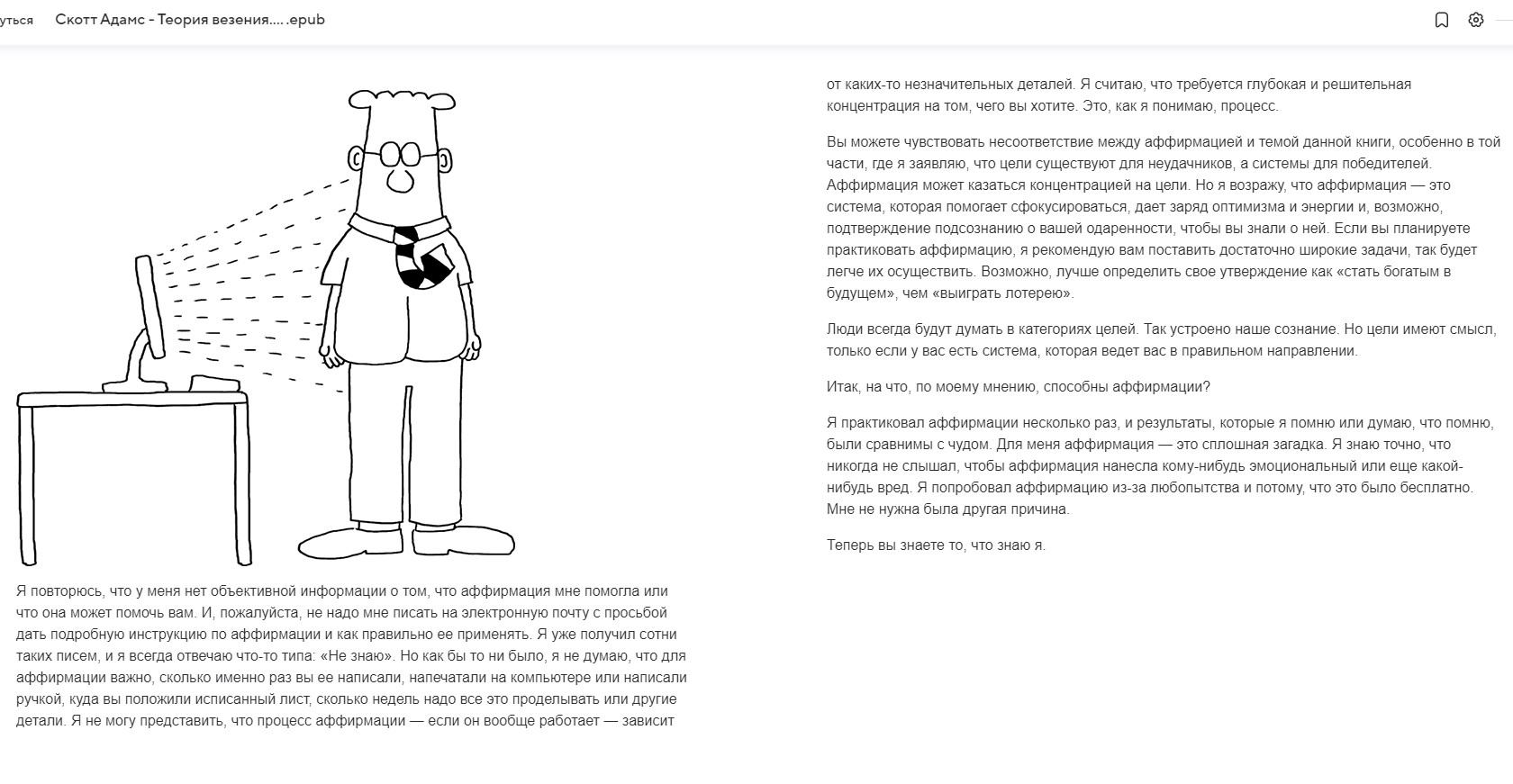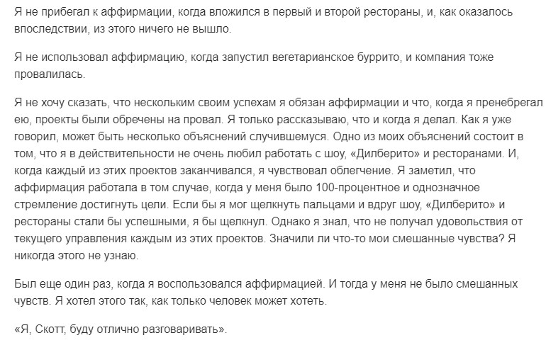 Начал читать этого Скотта Адамса. Ебать у него шило в жопе. 10 тысяч проектов и муток - и на уровне идей, и на уровне практических каких-то внедрений/начинаний. Тут на наёмную непыльную работку ходить-то впадлу, а он просто фонтанировал всякими стартапами и во все щели вписывался. Не пытаюсь найти оправдание, но всё-таки он изначально очень энергичный кабанчик с определённым майндсетом. И это надо иметь в виду.