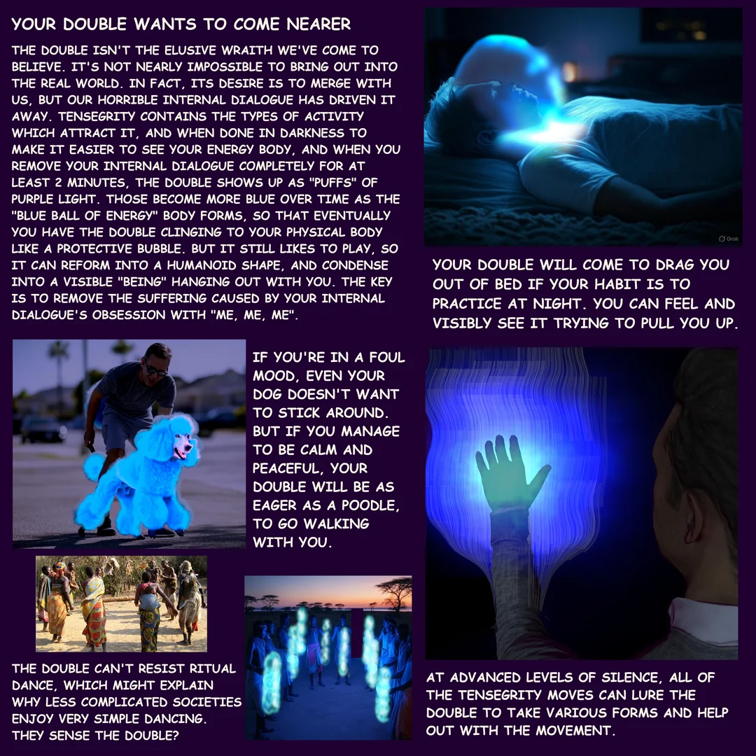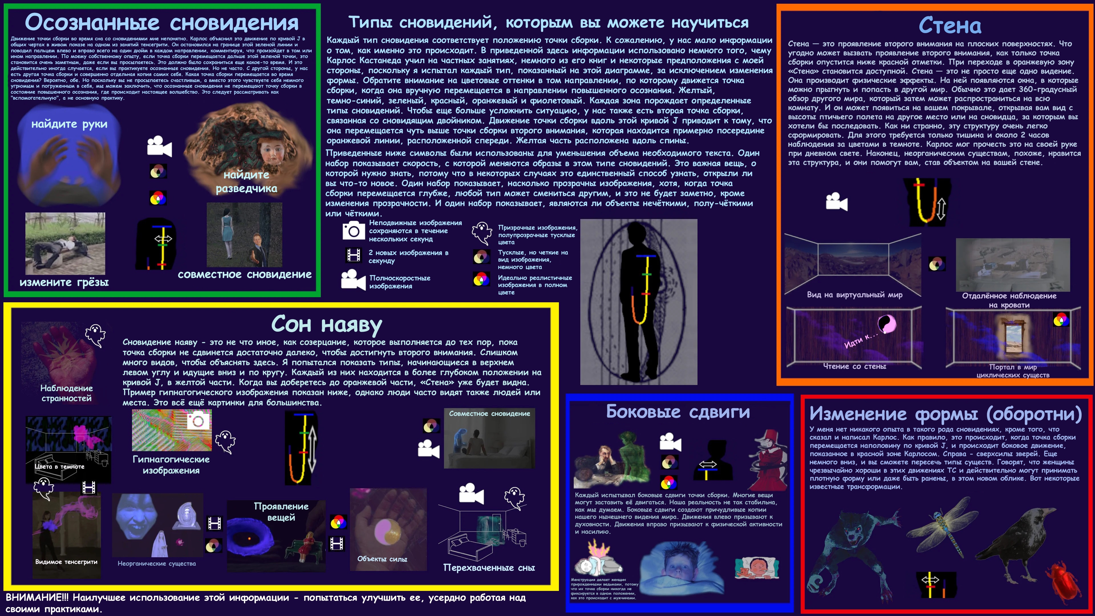 >>666413 (OP) Мне кажется что вы слишком преувеличиваете роль тенсегрити форся эти пикчи. Тот факт что их делали приближенные Кастанеды по семинарам не делает их правильными и истинными. В конце концов нам просто дано направление, объяснение как и с чем работать, а дальше каждый сам по себе идет. А на этих пикчах прям как во всех других религиях тебе уже сразу пояснили что тебя ждет, этапы пути и все такое.