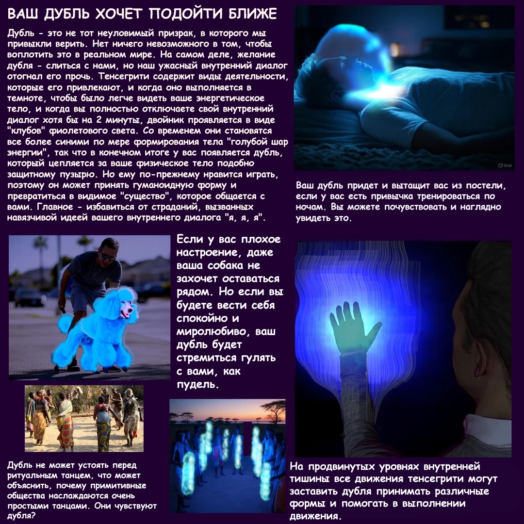 Прямо таких крутых погружений не было, но определённо ощущение окружающего пространства меняется при тенсегрити. Некая вязкость воздуха появляется. Не знаю, как ещё описать. Такое ещё бывало при Игре Без Имени, но эта штука иногда такую дичь привлекает, что я давно уже не Играю. Видимо, один из эффектов движения точки сборки.