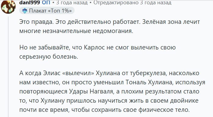 >>688397 Хулиан жил со смертельной болезнью годами, хоть и не рак. Но у него не было гор учеников, как у Кастанеды, которые сжирали энергию, был лишь стандартный набор из 16 человек, которых выбрало намерение. Он был первоклассный сталкер, то есть точку сборку в нужном положении мог держать всегда. Это как Дон Хуан на максималках, ведь Дон Хуан не все время был в дубле, а Хулиан да. У Хулиана был избыток энергии по строению, потому что не боредфак, а у Кастанеды вечный недостаток. При этом он тоже не мог вылечить свой туберкулез, ему приходилось просто избегать преждевременной смерти другим положением точки сборки. Если бы она вернулась, ему бы конец настал. С лечением физического тела в линии Дона Хуана все не так уж хорошо, лечение физического тела не специализация линии. Ее специализация это достижение дубля-нагваля и сдвиги точки сборки. Кастанеда к тому же всегда был нагвалем, который заболел, даже во времена Дона Хуана еще. Все это сыграло роль, почему он рано умер. Даже его ведьмы говорили, что ему не стоило заниматься семинарами и на всю эту деятельность смотрели негативно. Ведь она ему вредила.