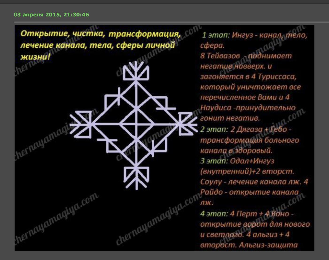 "Руны работают, посоны. Эффект превзошел все мои ожидания. Не буду писать, что делал, так как часто пишут о сохранении тайности. Просто хотел сказать вам, что они работают. Относитесь к ним с уважением, не бойтесь проливать кровь, делайте оговоры, обращайтесь к богам, не жоптесь на дарах. Кастуйте, посоны, и будут вам ништяки." Рандомный анон