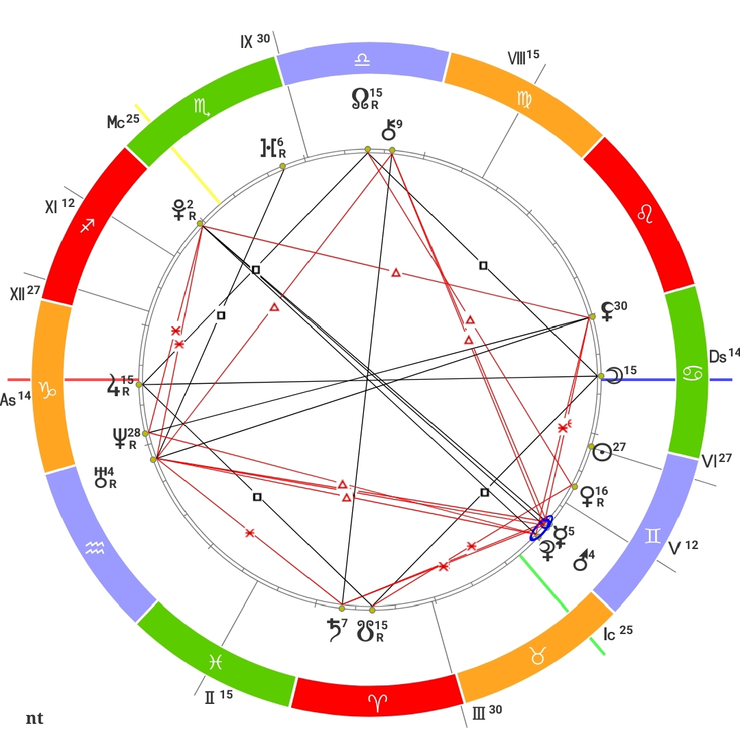 Значима также точка 22 Скорпиона (Сатурн АТО) и Водолея (Юпитер гр. войны)