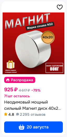 Все так только на утро ебало опухшее будто с недельного запоя. Видимо мощный магнит задерживает жидкости в тканях.