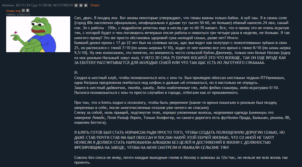 >>686900 >>686885 >>686886 Начнём с того, что это ещё ребёнок. Предъявлять претензии ребёнку за что-то, на магаче, где у неё какие-то детские душевные проблемы - это быть дегенератом конченым, даже по меркам /b/, по лицу это видно, это ещё даже не взрослый человек. Каких-то инцелов нагнали, миллионеров, она ещё даже в возраст не вошла такой, чтобы это понять. Что ещё раз подтверждает, что никакой магией вы не занимаетесь и заниматься не можете всерьёз, потому что это на поверхности лежит, а магия - гораздо глубже. Обыкновенная шудра, которой нужно доверять только махать лопатой, а не сидеть о социуме рассуждать, кому в /b/, а кому не в /b/. Ьессовестный низкосоциальный скам.