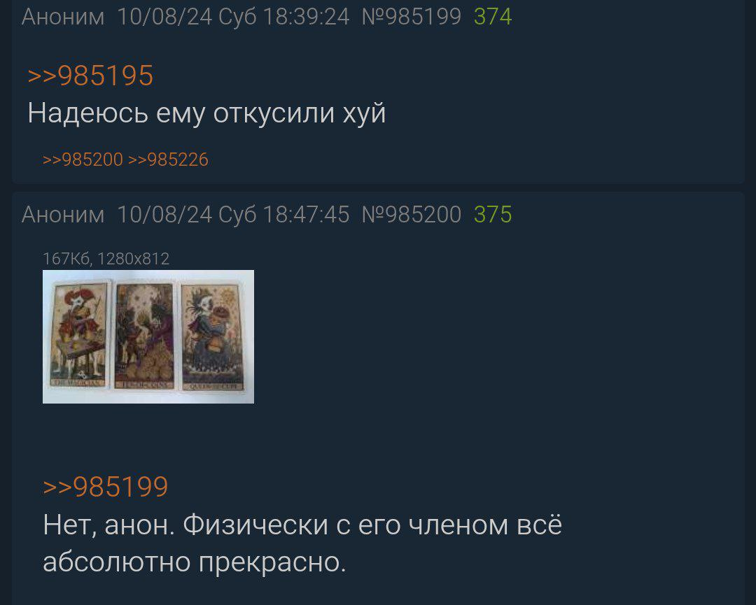 Неужели тут не осталось людей которым нехуй делать? Вот бы пришел анончик, который хоть на курином гавне гадает, посмотрели бы в каком заездом полушарии бонус с анусом и тэдэ. Духов напрягать за такой вопрос я готов только если обсуждение хотя бы свеч стоить будет. Сам юдоль читать токмо начал, но в допотопных ритуалах не разбираюсь. Попробую хотя бы накатать некоторые путевые заметки и скинуть интересные зарисовки, мб какой мимокрок захочет повозиться