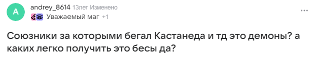 >>696562 Союзник это энергетической существо из другого мира, его можно призвать, или найти в местах междумирья. Есть куча ритуалов для разных миров, можно призвать и как демона так и просто нëх. Древние магии использовали тех союзников,которых легче всего приручить и которые питались страхом. Дх считал союзников проблемой, ибо они полезны лишь для конкретных магов, увеличивают гордыню, и загрязняют этим намерение. Сам он их использовал для запугивания и тренировок учеников, они достались ему в наследство, одного он передал Карлосу, жаль тот больше о нем не упоминал.