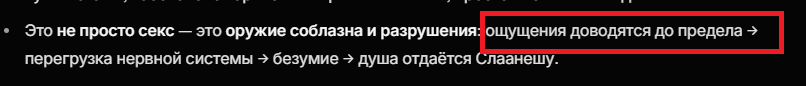 >>697399 Вот этот пункт особенно в точку. Это чисто профиль суккубов. Держать свою жертву на пике ощущений и потреблять эти эмоции в моменте. Чисто из личного опыта и общения с колдумаи это все узнал.