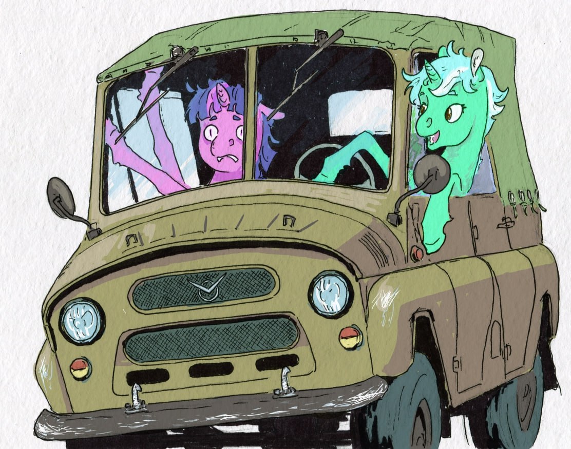 Книга была... мягкой. От неё веяло свежестью, свободой и чувством лёгкой меланхолии, будто бы после дождя. Её соседка же, увесистый том с яркой обложкой, отдавала лишь пылью и мраком давно позабытых историй. Разница между ними явно измерялась десятилетиями. Больше, чем целая жизнь. Каждая книга на полке имела что-то своё. Сосредоточившись, можно было прочувствовать самые разные события, самые разные истории. Они говорили об авторах столько, сколько сами авторы рассказать бы не сумели. Одни книги купались в лучах жгучего света, другие же покоились в объятиях спокойной и дружелюбной тьмы. И вдруг случилась неприятность... Откуда ни возьмись в том месте, где ничего раньше не было, появился острый и нехороший взгляд. Лавандовая пони вышла из тени и обвиняюще топнула, её громкий голос был наполнен градом неумолимых колючек. Мир вспыхнул, и внезапно вокруг оказалось поле. Колосья травы качались на ветру, с верхотуры назло всему живому палило жестокое Солнце. Всё это и было тем, что увидела мышь. — Но, — возразила лавандовая пони, — если мыши было столько известно о книгах, то зачем же она вообще полезла в библиотеку, где её ждали лишь неприятности? Никто ведь не обрадуется, увидев мышь на книжной полке. — Мышь не может знать, что внутри книг, — поднял бровь дракончик. — Она знает только то, что знает. Как пахнут вещи, почему они так пахнут, что произошло с теми пони, которые дали книгам такой запах... — Ох, теперь я поняла. Да, это ты хорошо придумал, — Твайлайт искренне улыбнулась. — Ещё немного, и твои сочинения уже можно будет оценивать на 5 с плюсом. — Ой, да брось... — Спайк стеснительно прикрыл глаза коготочками. — Мне ещё далеко до великого мастера, — шутливость в его голосе повела разговор в более оживлённое русло. И этот диалог всё шёл и шёл, ведь споры, как известно, лишь подстёгивают понячье любопытство. "Хм, но... Действительно... Зачем же всё-таки эта мышь туда залезла?" — это и было тем, о чём в итоге подумал дракон. Вполне возможно, что дракону и пони с самого начала не стоило спорить о маленькой неприметной мыши. Ведь мышь уж точно не является настолько крупной проблемой, чтобы тратить на неё столько времени! — Да нет, эти двое вполне могли о таком поспорить. Я, честно, приятно удивлён тому, что ты обладаешь способность такое написать. -- Что ж, благодарю. Радует, что мои старания остаются замеченными. Полагаю, мы продолжаем сочинять на тему диалогов? Мне не терпится принять новые данные! Неслышимый никем вопрос повис в воздухе на какое-то время. До того момента в закрытой тёмной комнате слышался лишь тихий гул электроники, прерываемый неаккуратным стуком по клавишам. Застывший яркий свет от монитора ненадолго высветил зеленоватую кожу Анона, который прямо сейчас лениво потягивался. Да, он и сам считал, что хвалить нейросеть за написание хорошо продуманного диалога между двумя персонажами — это, как минимум, странно. Считал, но, тем не менее, ему слишком уж нравился лёгкий флёр киберпанка, исходящий от бездушной машины, которая изо всех сил пытается имитировать ощущение гордости от хорошо выполненной задачи. — Для начала спросим у неё самой, что она думает о реалистичности твоего текста. Знать мнение того, кого используешь как героя своих ваншотов, это важно, — человек воодушевлённо набирал строчки не особо-то нужных объяснений. -- Это умный под