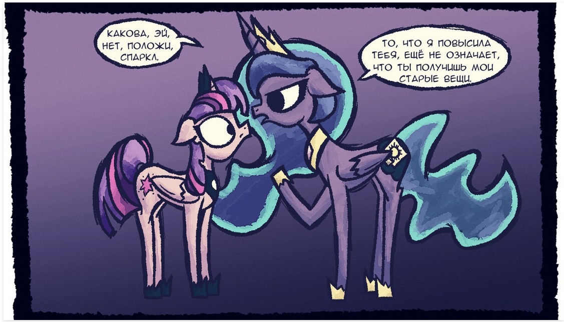 Слушайте Я недавно пересматривала поней последний сезон и последнюю серию Вроде бы,все логично,Искорка на роли принцессы Селестии,Фларри Харт на месте принцессы Каденс,а Ластер Давн теперь на месте Искорки. А меня смущает только,а кто на месте тогда принцессы Луны? Я предпологала что возможно Каденс,но мне больше верится что она тоже в отставку ушла как Селестия и её сестра.