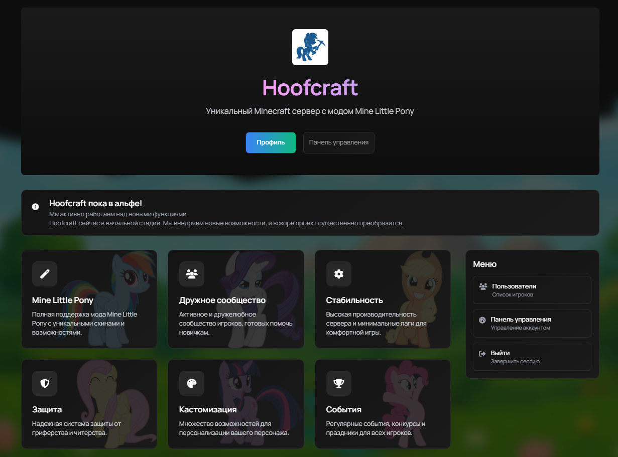 На хуфкрафте будет ещё и социальная составляющая, можно будет добавлять челиксов в друзья, смотреть кто когда заходил, мб даже аналог стены вк запилится