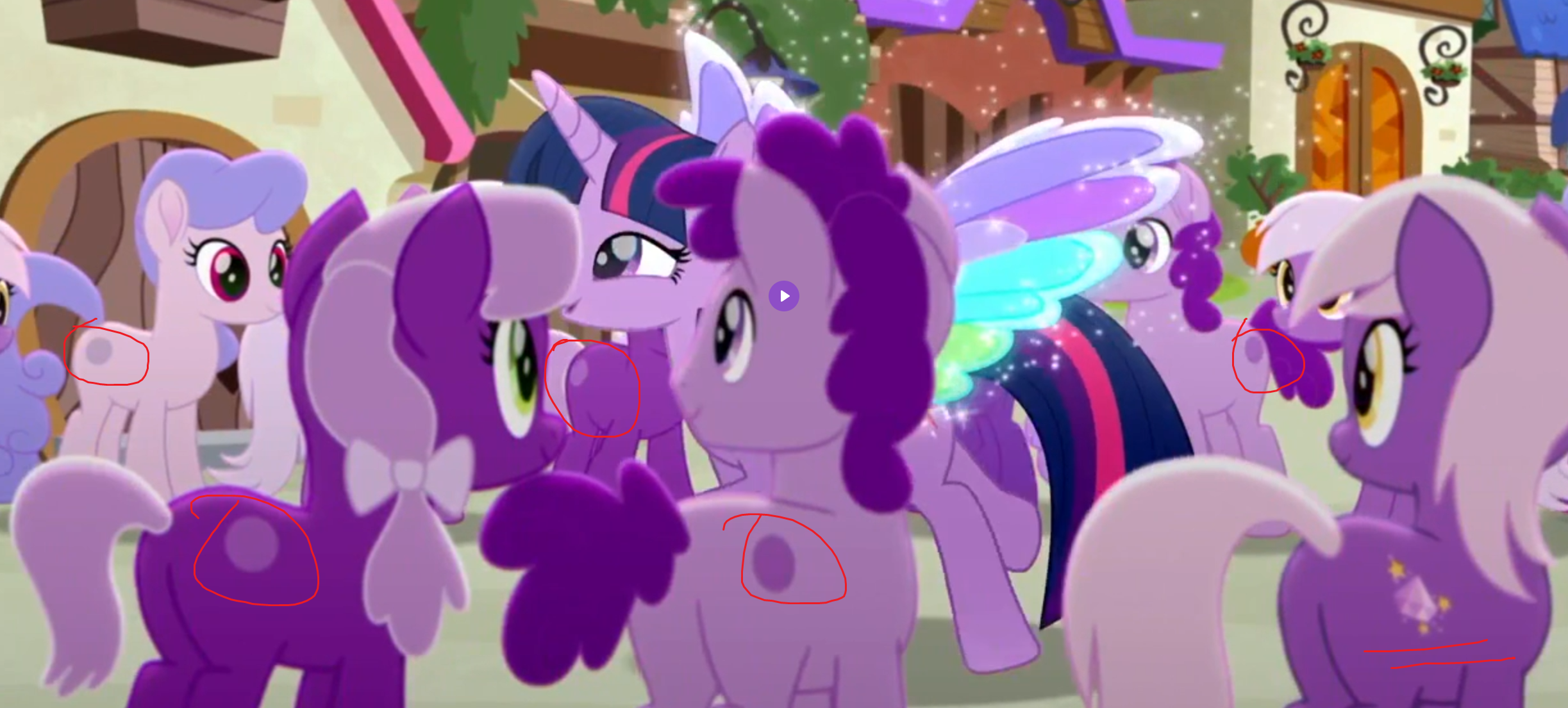Всем привет! Вопрос знатокам или просто щарющим. Решил посмотреть полнометражку Rainbow roadtrip, все было нормально до самого конца, однако! Объясните мне, почему в конце когда вернулись краски у одни пони были кьютимарки, а у остальных просто круги на боках? Неужели художникам было так сложно придумать им кьютимарки или тут есть какая то мысль которую я упустил?