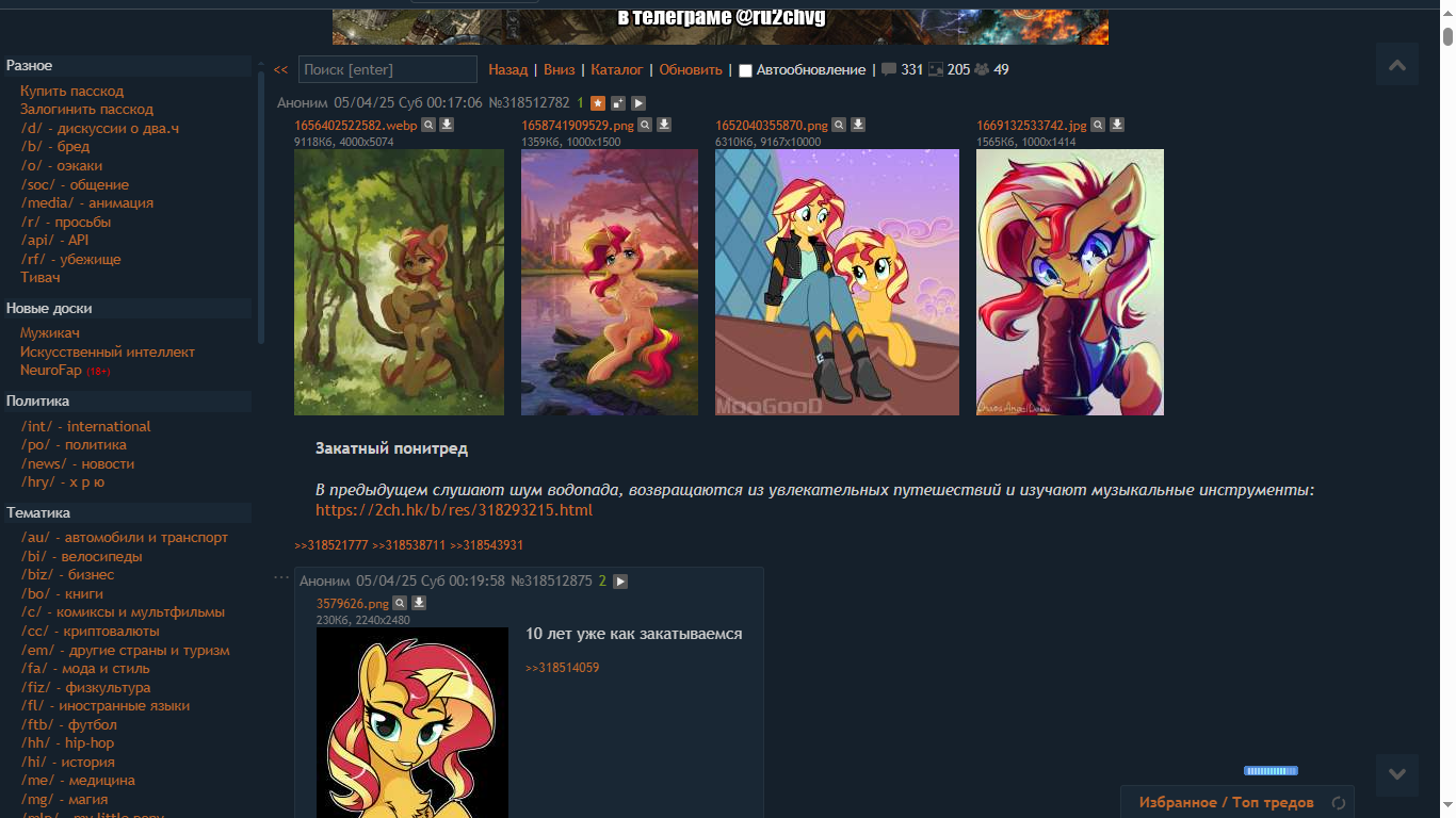 Решил вкатиться в общение в треде. Я ньюфаг, что в /mlp/, что на дваче. На двач привела меня судьба прошлой весной. В 2023 году посмотрел все 9 сезонов. До этого смотрел поней в прошлом и досмотрел до 7 сезона, после чего дропнул, тк стало скучно. А вы тут давно сидите на этой мертвой борде?