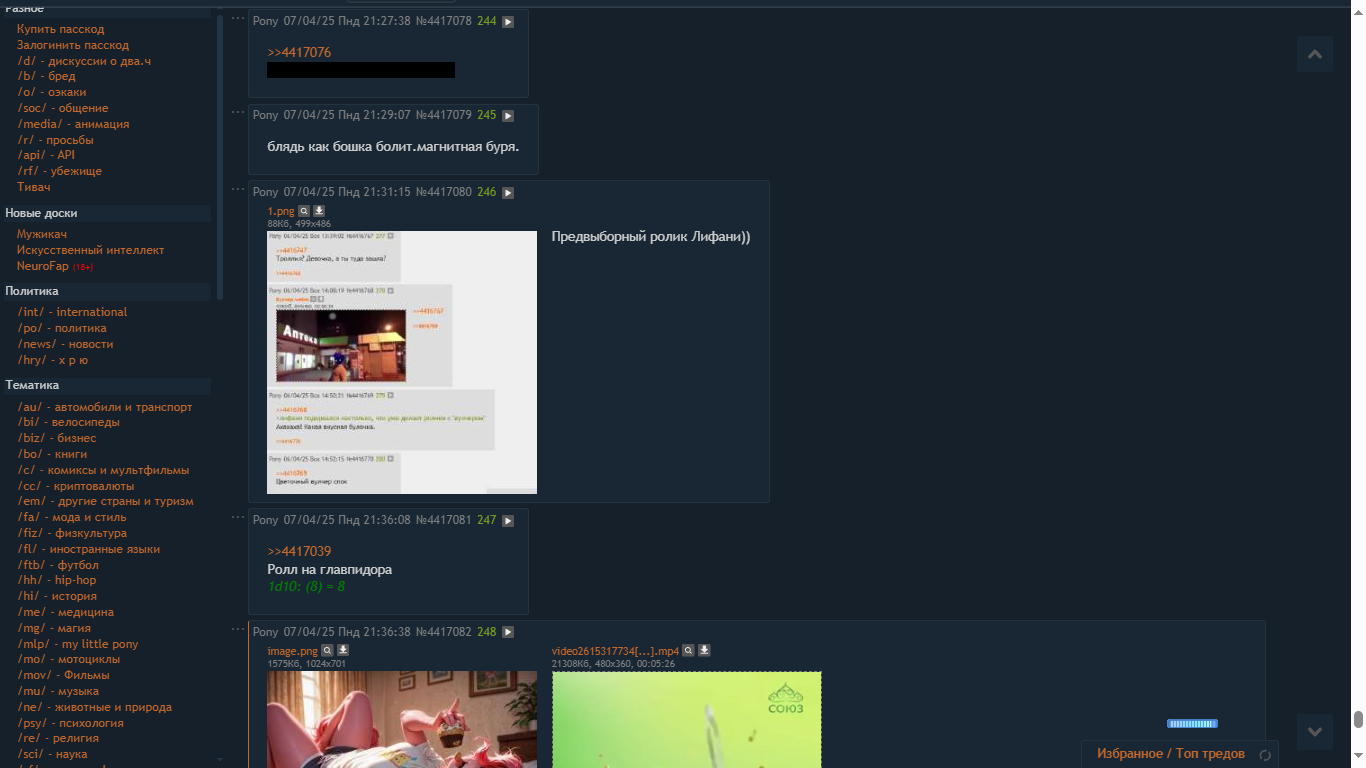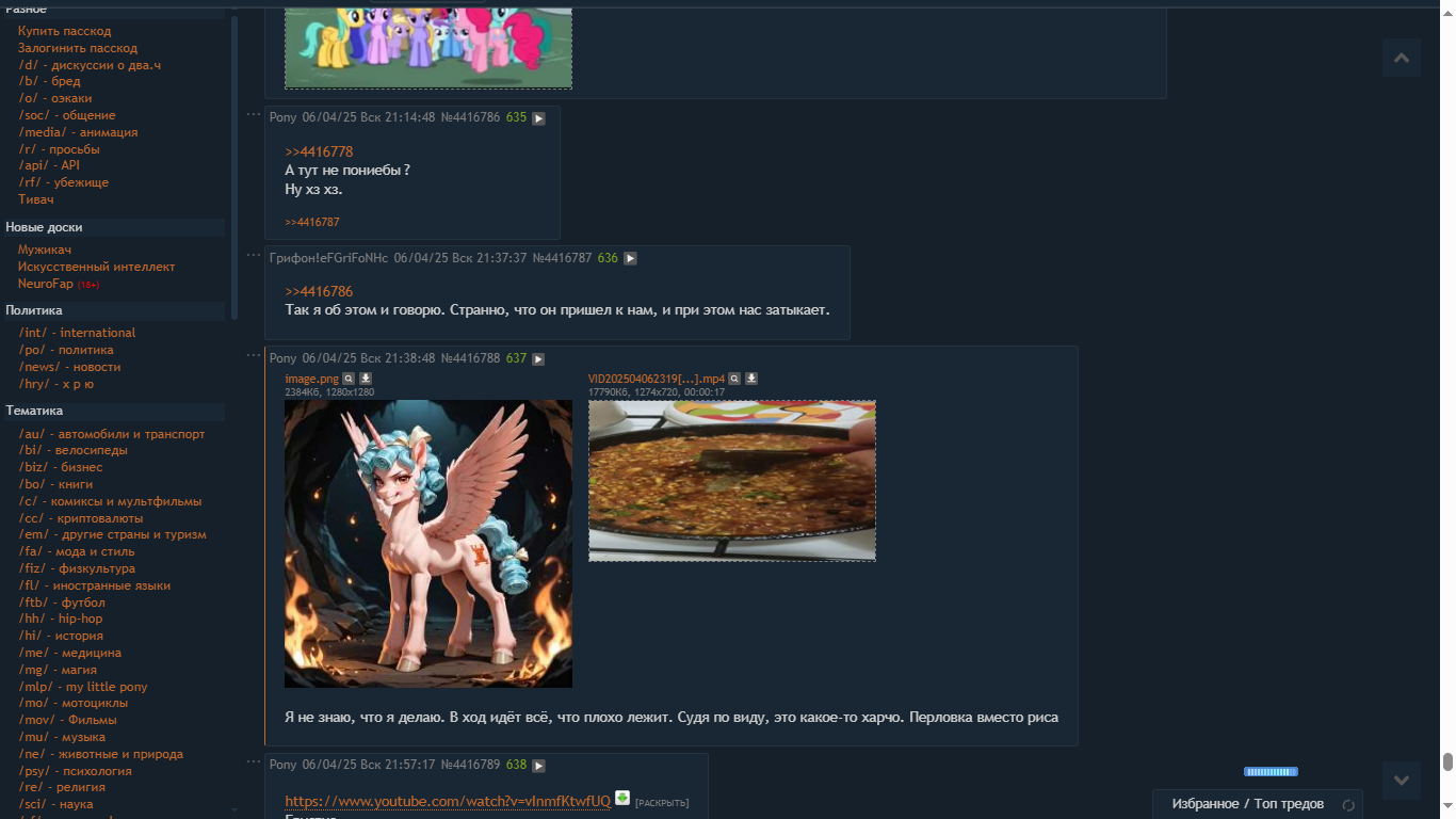 Тред оптимума для народа Прошлый тред >>4416042 (OP) пытался воспользоваться поддельными талонами, пил солёный чай и порвал три бойана по Сталлионграду. Табуняши обсуждают фурре и им норм: https://tabun.everypony.ru/blog/kino/219173.html Смотреть онлайн: https://thedoctorteam.ru/project/mlp/ (+ порядок просмотра) https://магиядружбы.рф/стафф/видео/https://www.sunnysubs.com (сабы)Friendship is Magic: https://rutracker.org/forum/tracker.php?nm=My Little Pony Friendship Is Magic&rid=2285744https://yp1.yayponies.no/videos/episodes.php The Movie: https://rutracker.org/forum/viewtopic.php?t=5463031 Rainbow Roadtrip: https://rutracker.org/forum/viewtopic.php?t=5754903 Pony Life: https://rutracker.org/forum/viewtopic.php?t=6027264 A New Generation: https://rutracker.org/forum/viewtopic.php?t=6114127 Арты: https://trixiebooru.org/ Народные альтернативы: https://twibooru.org/ — лучше всего подходит для обратного поиска (картинки по картинке)https://ponybooru.org/ — тем, кто ищет художников, которые удалились с деприбуры.https://manebooru.art/ — тем, кому модерации на дерпибуре малоОфициальный саундтрек: https://rutracker.org/forum/viewtopic.php?t=6001615 Архивы фанатской музыки: https://rainwatertornado.cloud/collections/pony-music-archive/ https://pony.fm/ Архив всякого понячьего, переехавший с celestianism.rocks: https://theponyarchive.com/ >Ride will never end /) >А были бы у вас жеребята, не грустили бы.