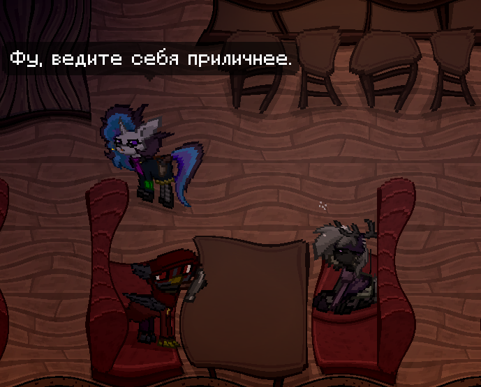 Вдруг окно распахнулось с такой силой, что стёкла задрожали. В комнату ворвался седой пони в ржавых доспехах. Его глаза горели безумным огнём, а в руках он держал чемодп6 с надписью Дмб 2012. Плни сделал глоток прямо из горла и, пошатываясь, направился к кровати.
