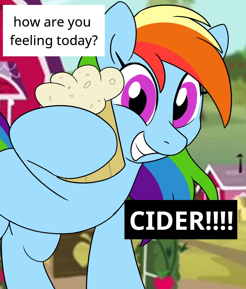 >В МЛП может и был намёк, когда Дэш очень хотела сидра, что даже пыталась выпить его из грязи, но это не более чем жажда. В Америке сидр безалкогольный, и называется он мягким сидром. В любом случае эскапизм, формой которого является алкоголь поняши принимают только в целях интеллектуального развития, допустим погружение в мир Дэринг Ду. Гедонизм там ограничивается моральными ценностями, что не позволяет поняшам творить полнейшую содомию. Хуйня.