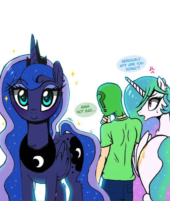 А если про допустимость такого, то… Это надо объяснять. Тут дело совсем не в том, может ли человек быть похож на пони. Тут другое. Важно твоё отношение к людям в целом. Готов ли ты в принципе иметь дело с людьми?