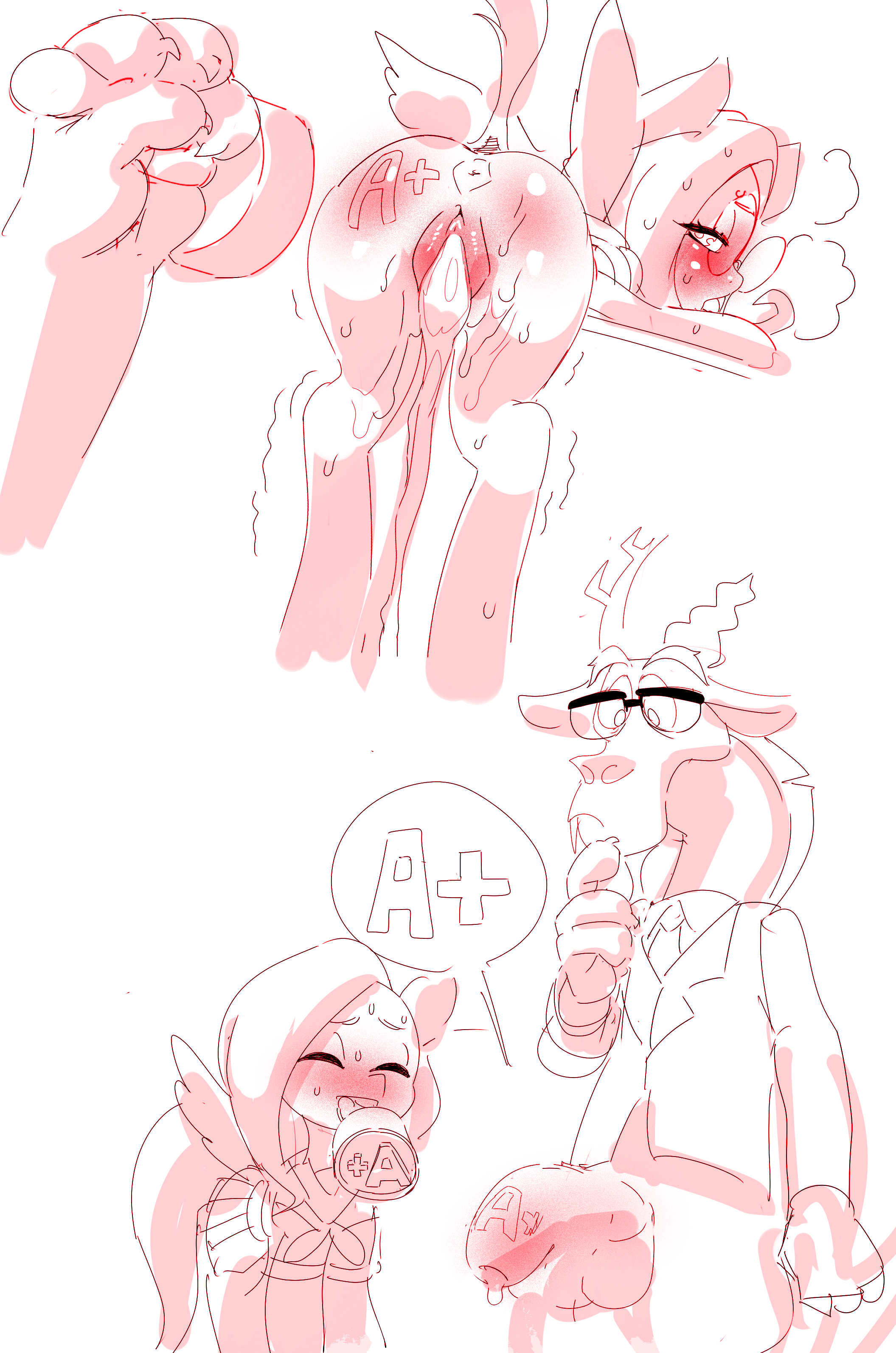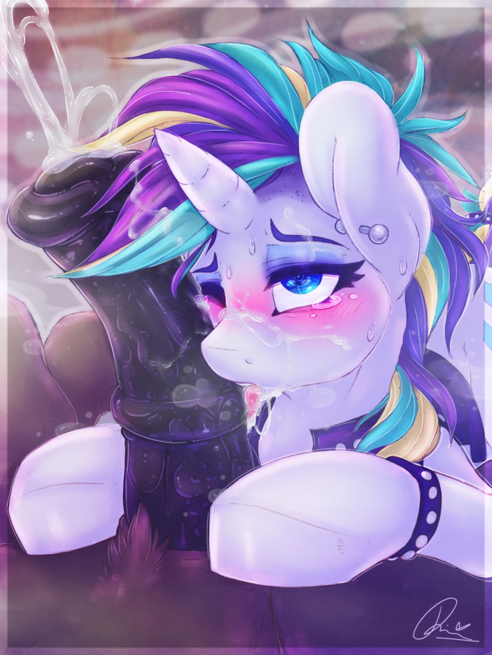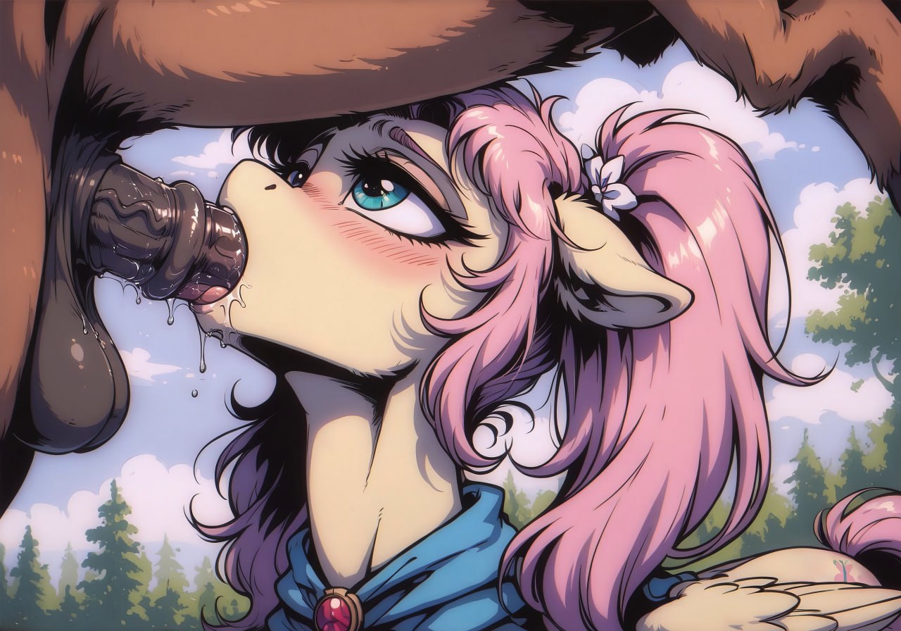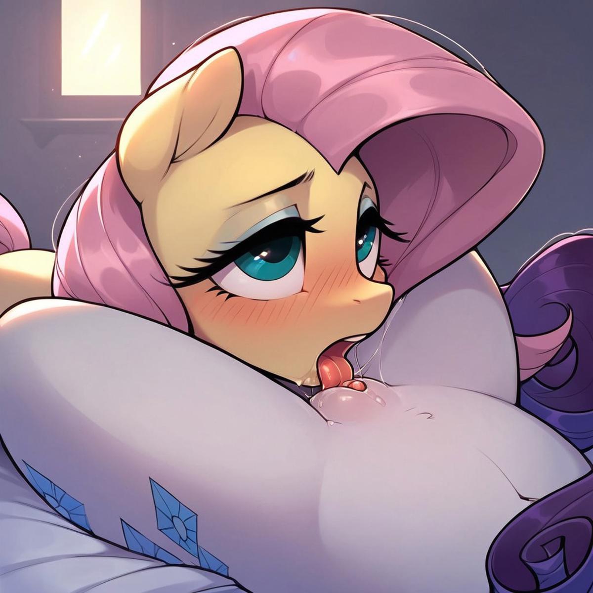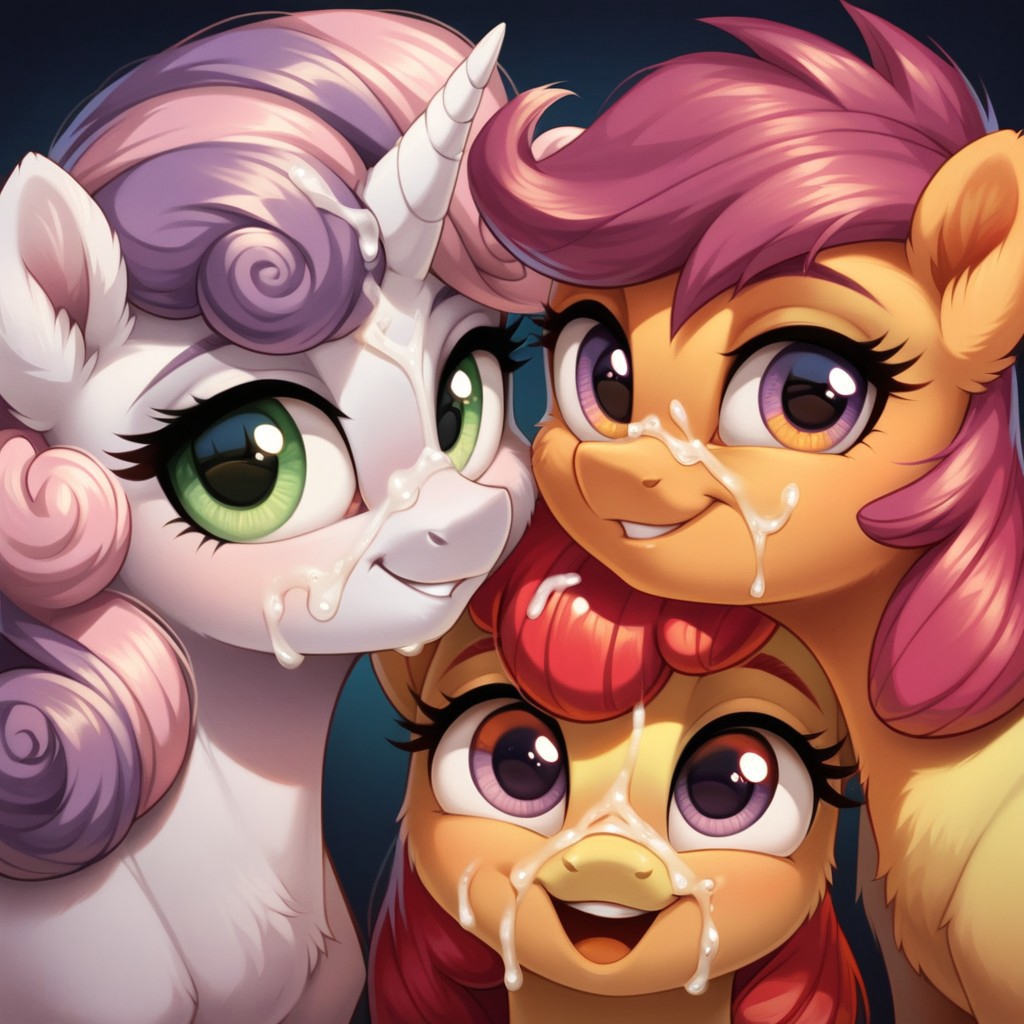 Вы нежно проводите пальцами по её щеке, поощряя её продолжать. "Глотай, моя маленькая пони, наслаждайся каждым глотком," - ваш голос звучит сладко и игриво.