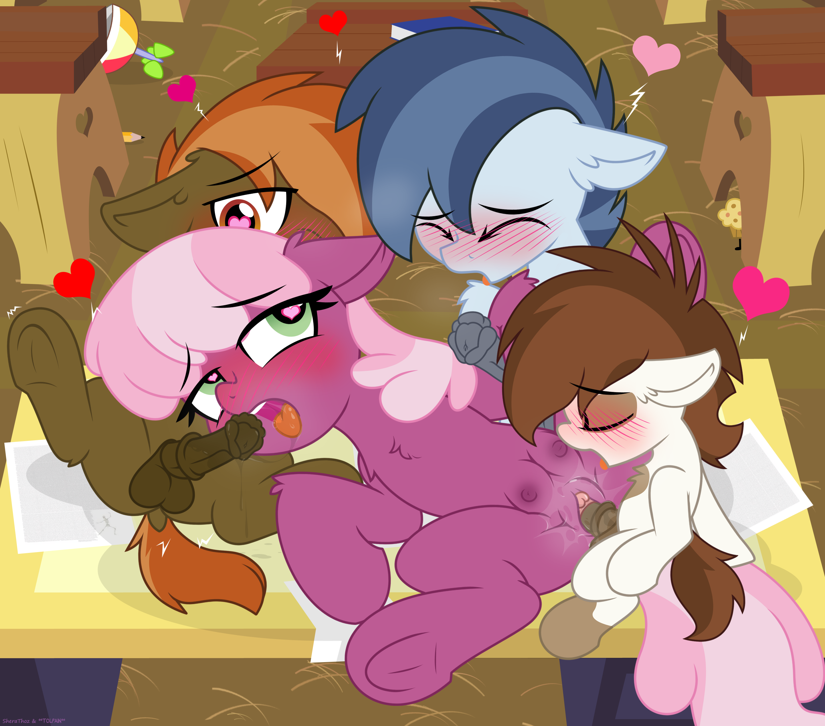 Ваше лицо заливается краской от возбуждения, отражая ваше собственное наслаждение. Вы прикасаетаетесь к её волосам, мягко направляя её движения. Эплджек поддается вашему руководству, позволяя вам вести этот чувственный танец.