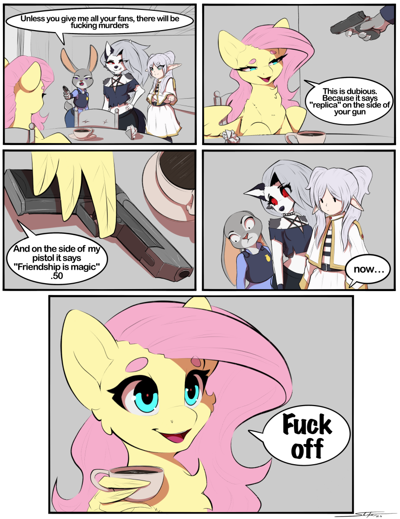 Нашел тут канал с переписанными моментами из шоу. Он просто добавил чуть-чуть больше фраз, чтобы последняя разрушительная фраза не казалось такой внезапной, взятой из ниоткуда. И как-то сцены стали больше похожи на разговоры ИРЛ. Если бы персонажи перебивали бы друг-друга, было бы 100% попадание. https://www.youtube.com/@AlexMLP/videos