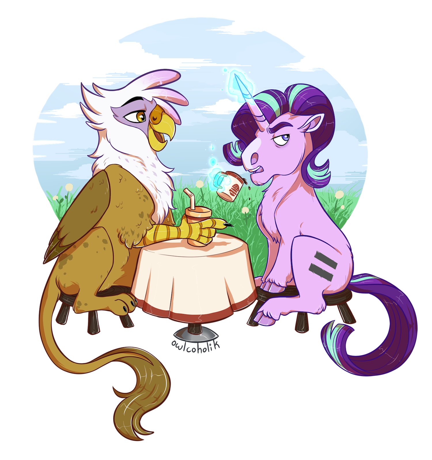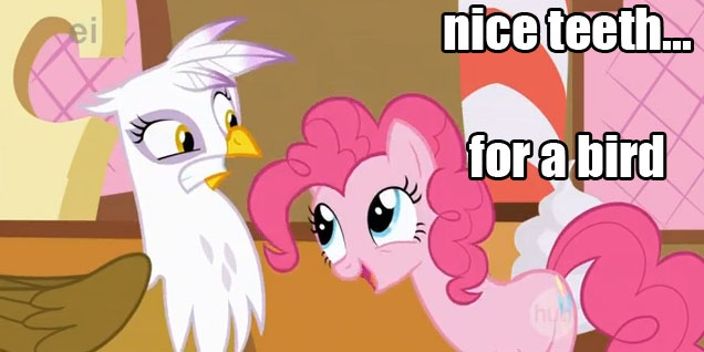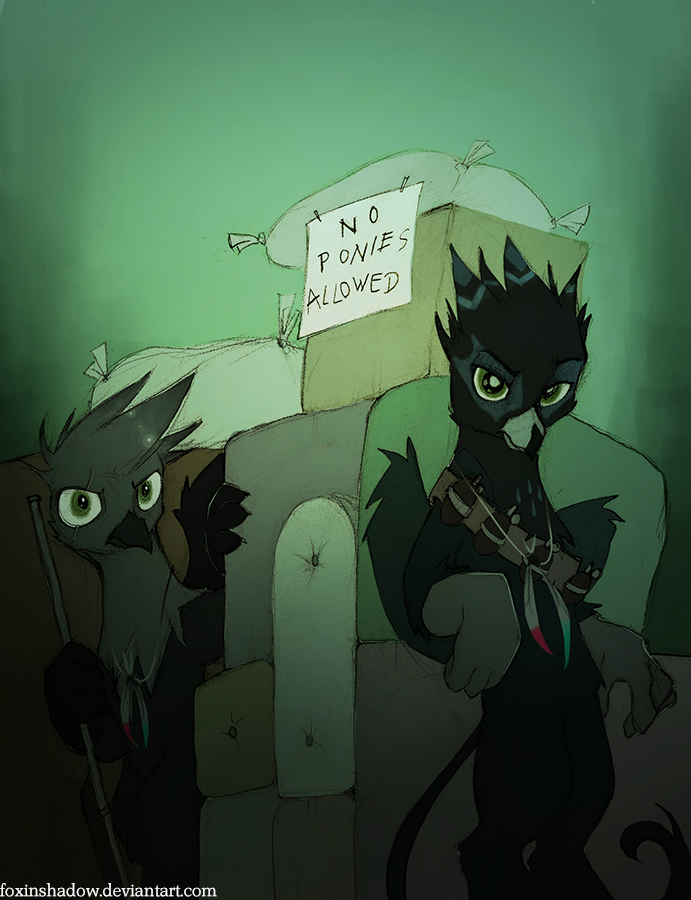 Множество фоновых грифонов. Не знаю, как с Галлусом, а грифоны и так фоновые персонажи по канону. Но этим грифонам уделили настолько мало экранного времени, что я их и запоминать не стал.