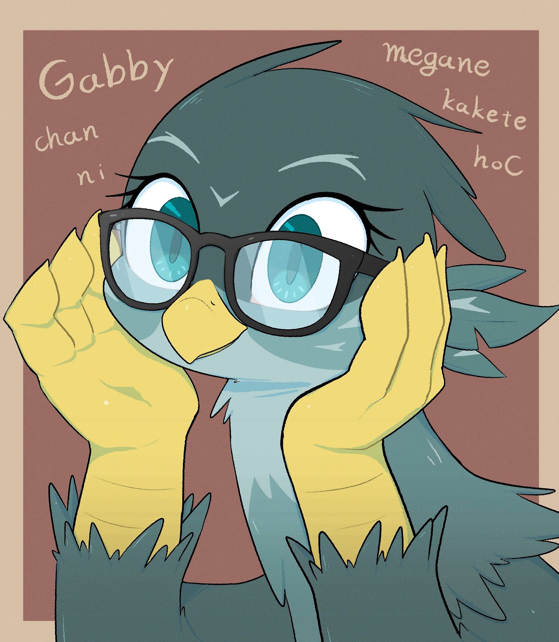 Gabby - почтовый грифон, доставляет из Гриффинстоуна в Понивиль и обратно. Дружелюбный грифон, пыталась договорится с CMC по поводу получения кьютимарки, но грифонам не дано. Соблазнила Спайка, из-за чего образовался "любовный треугольник". Да, Рарке пришлось не сладко.