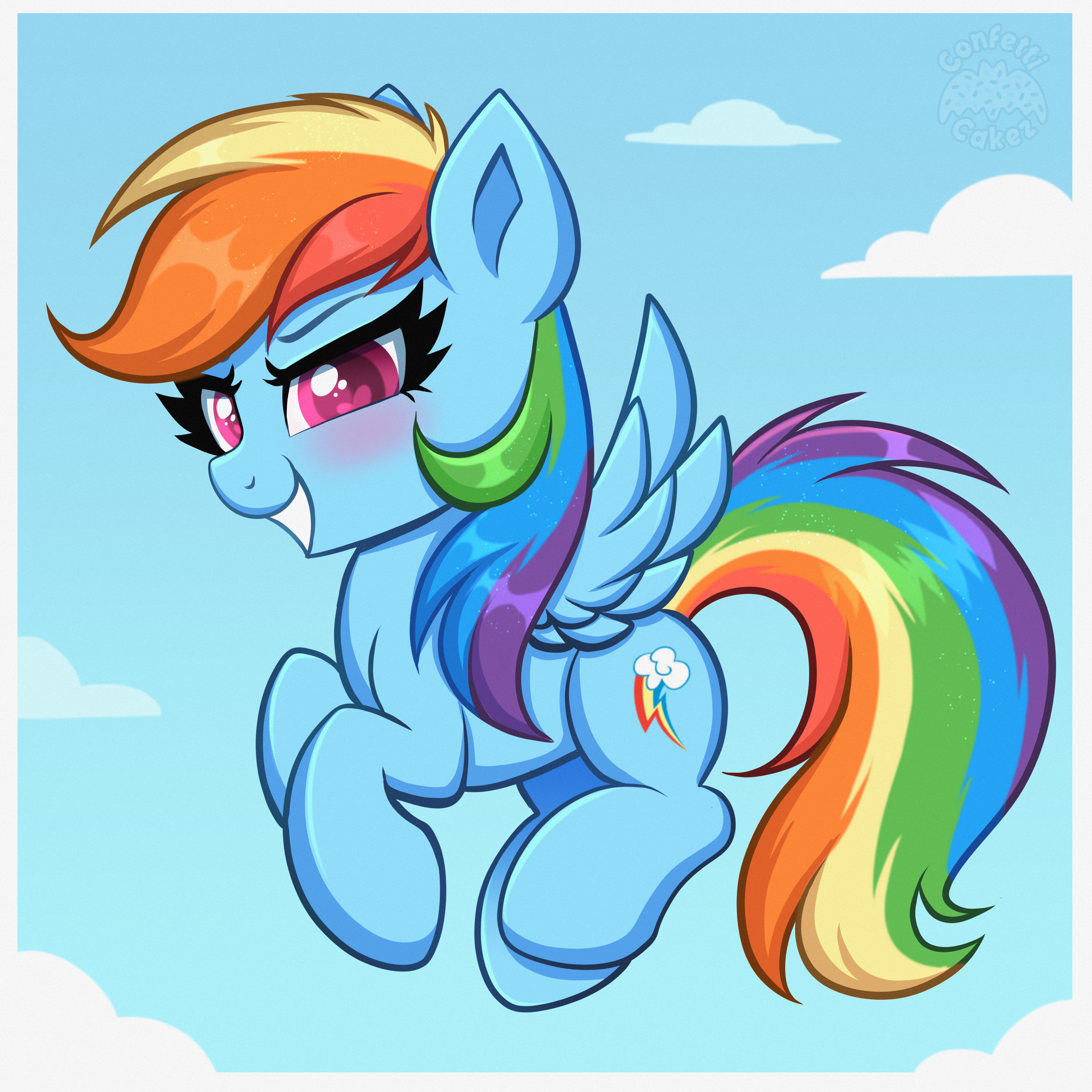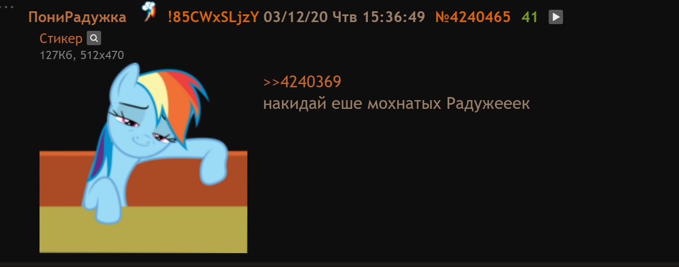Редко когда кстати видел Радужку в ипостаси самца, даже в порноте таких удивительно мало. Это странно, ведь она характерно темпераментная и больше подходит на "пацанку".