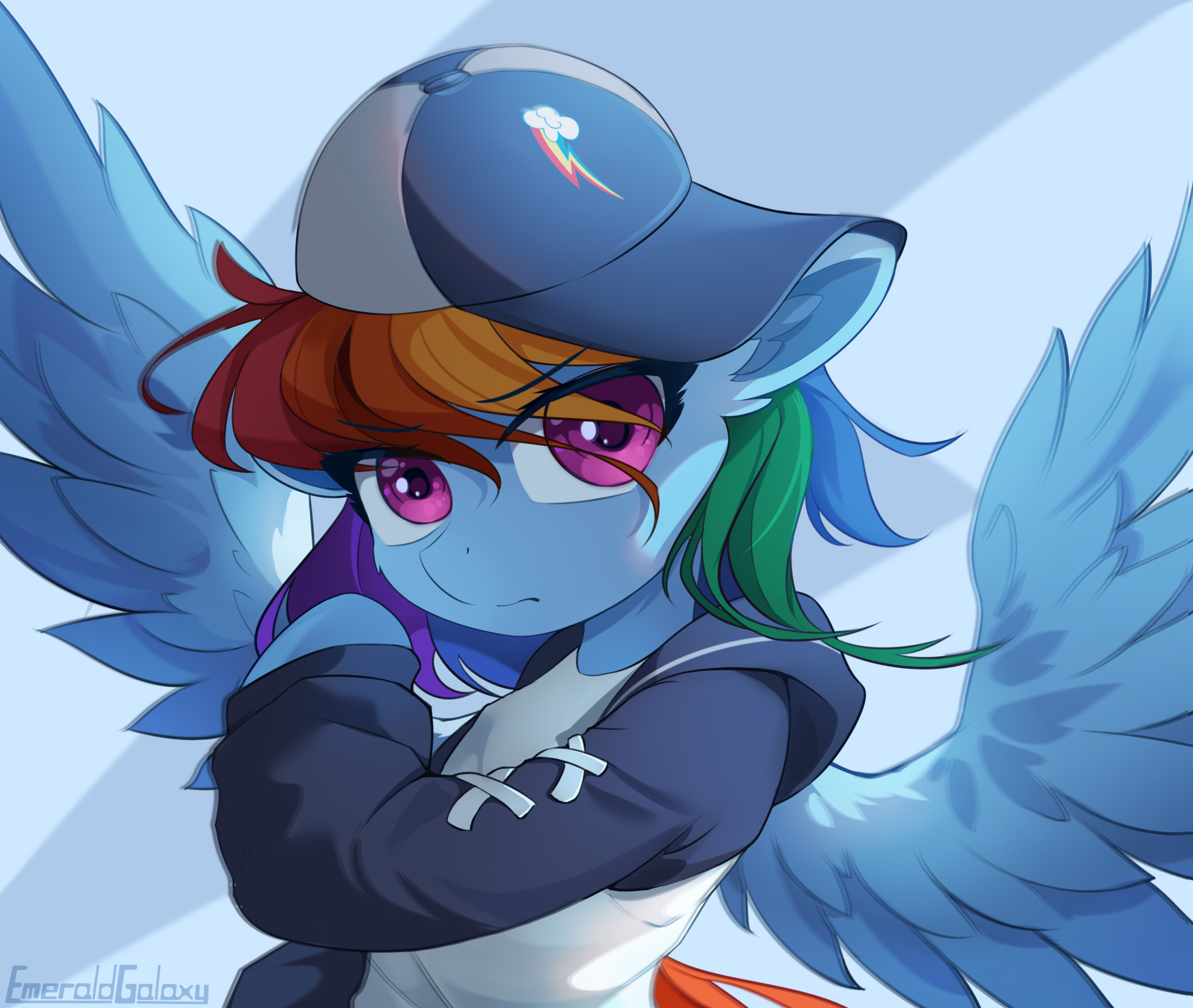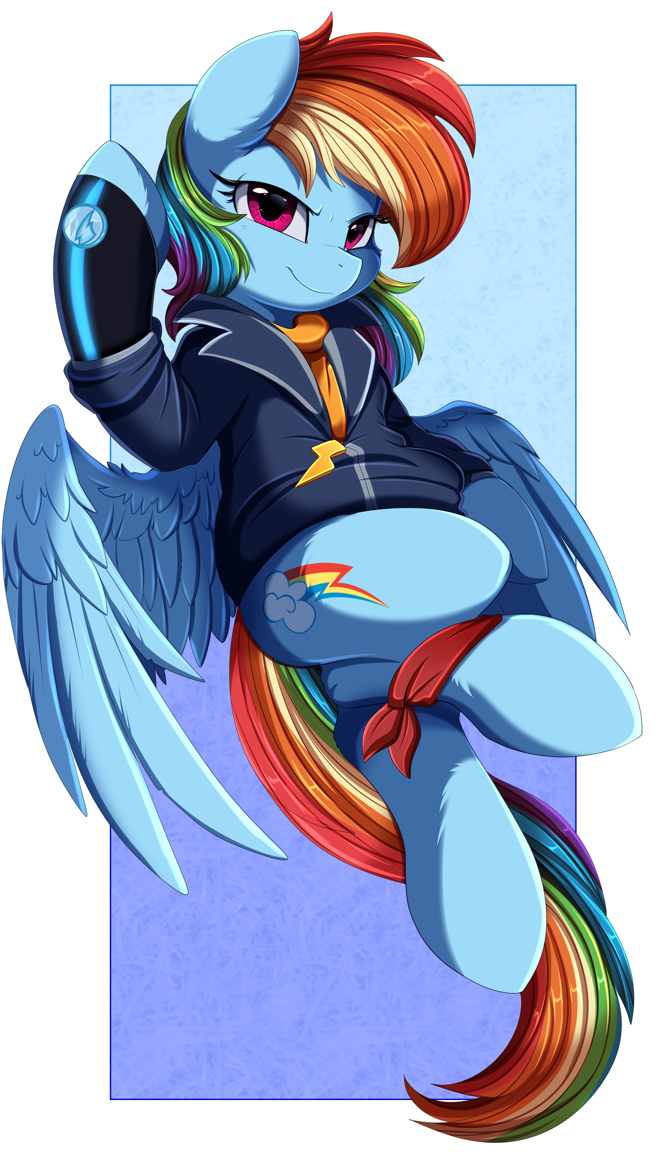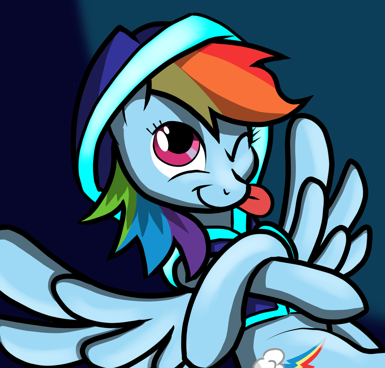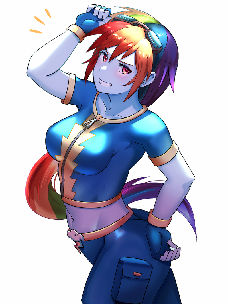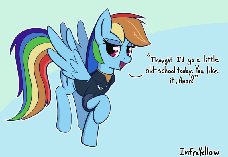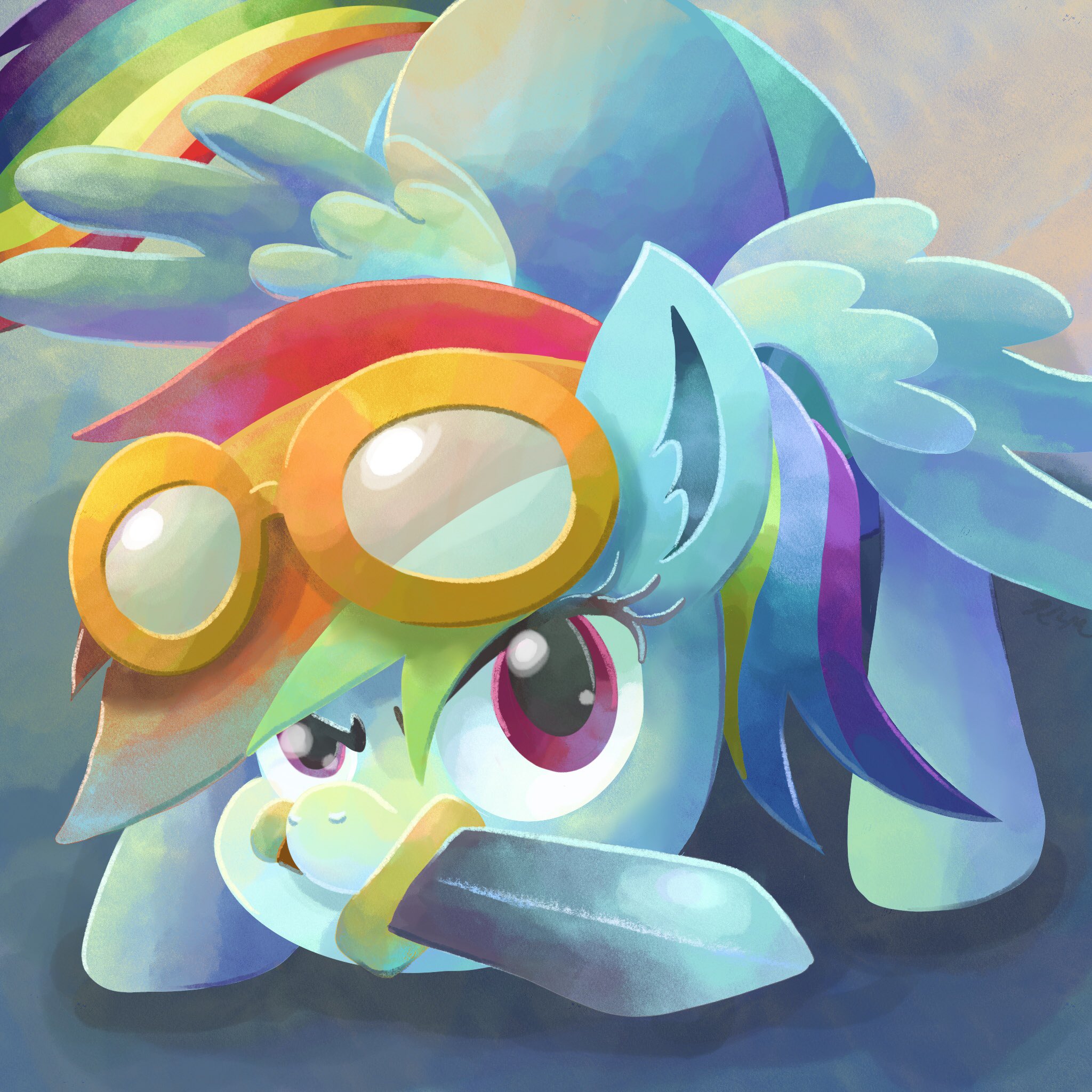 Так. Я знаю, у вас есть, потому что тут я это и видел. Ищу арт Дэшки, в чем-то типа кожанки и мотоциклетных очках, с шрамом через глаз, пони не хуманизация.