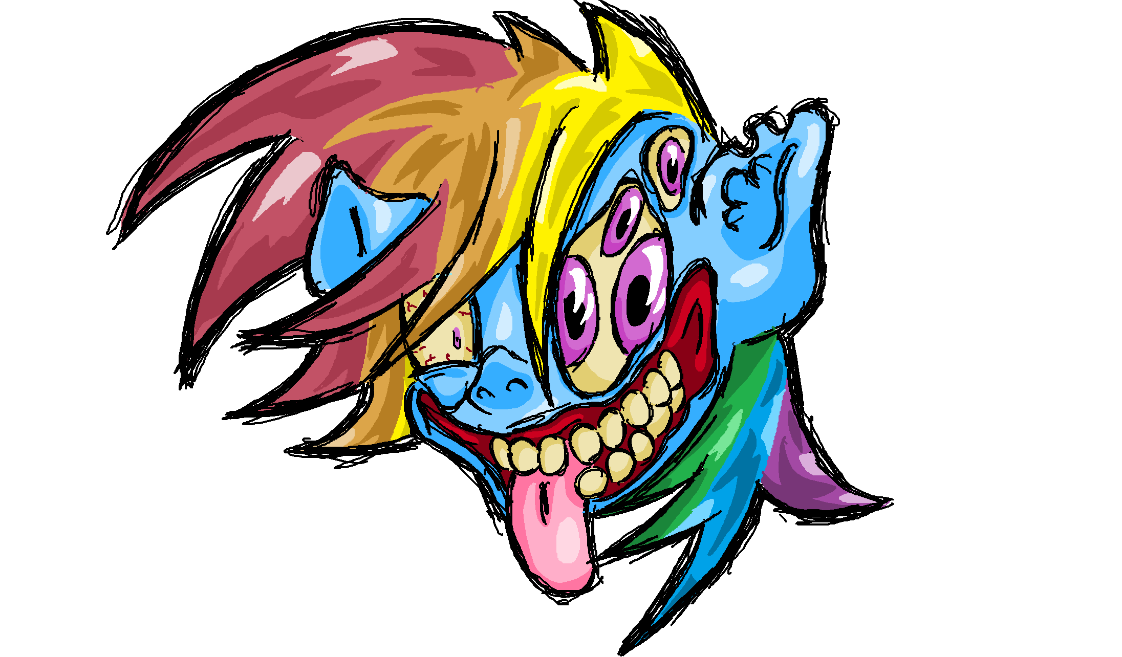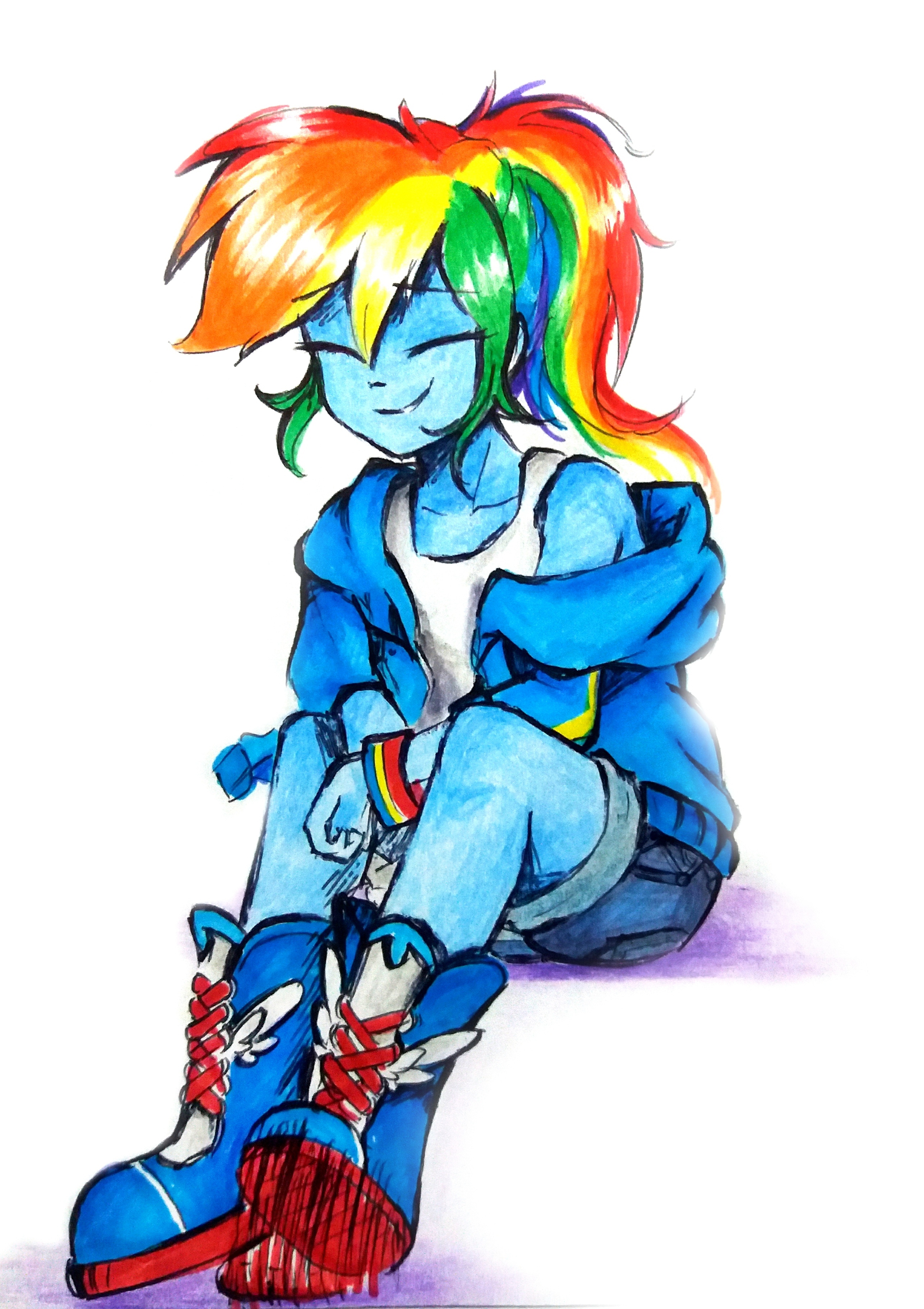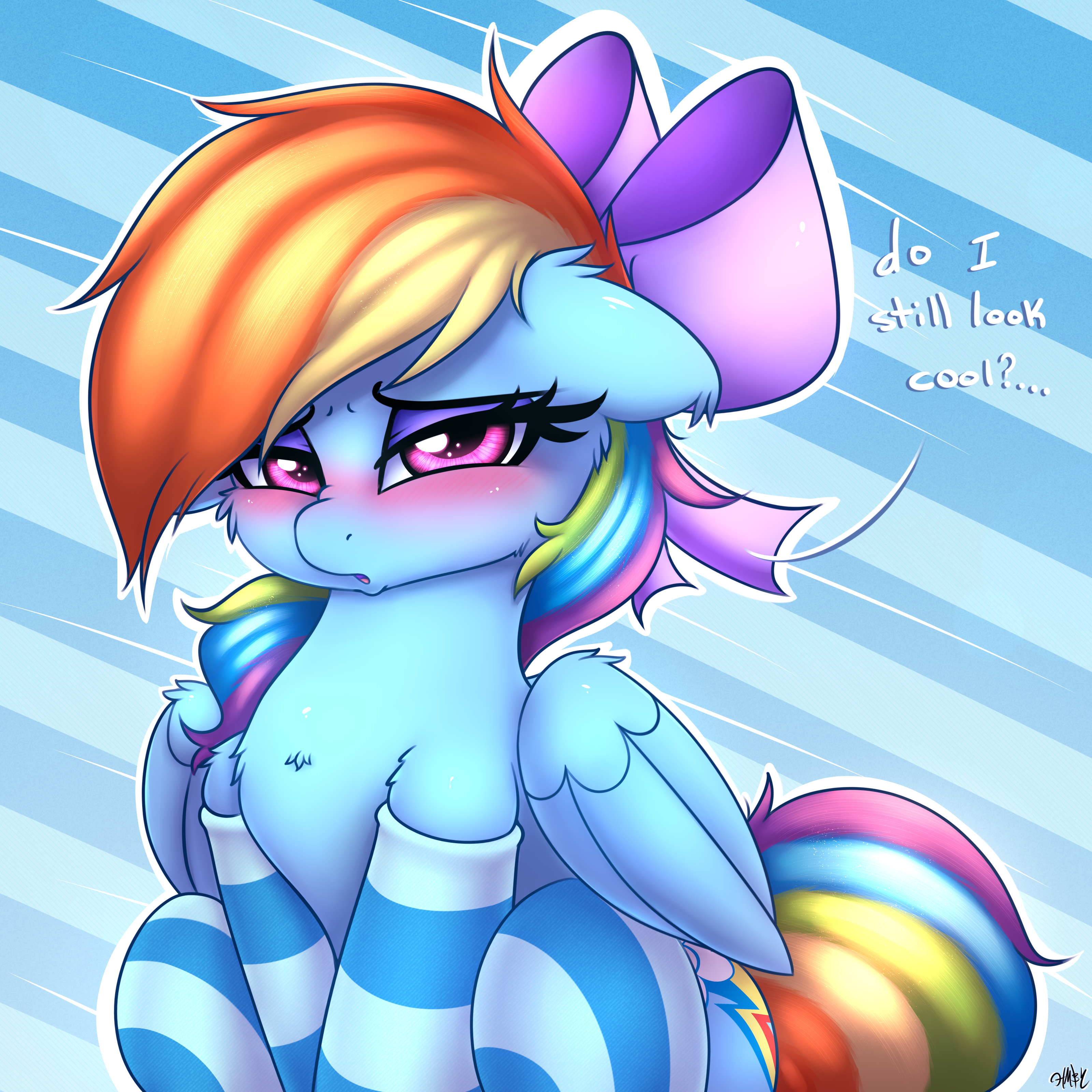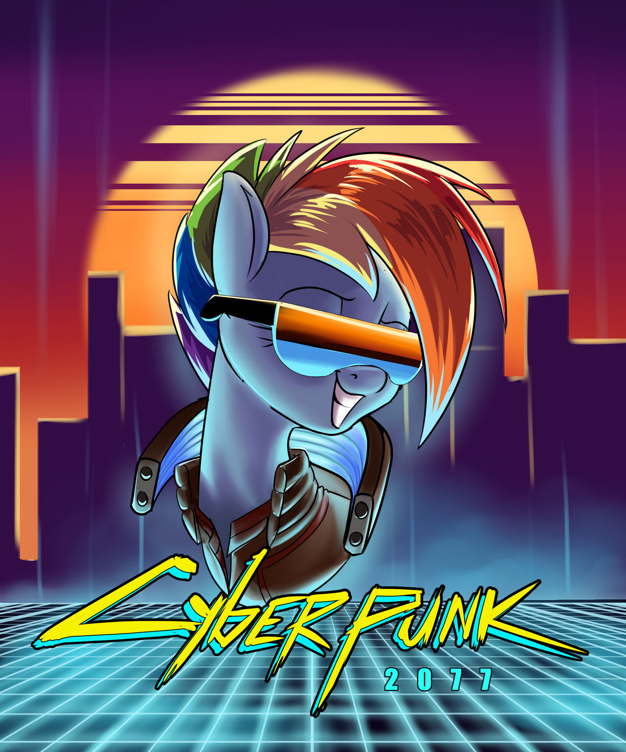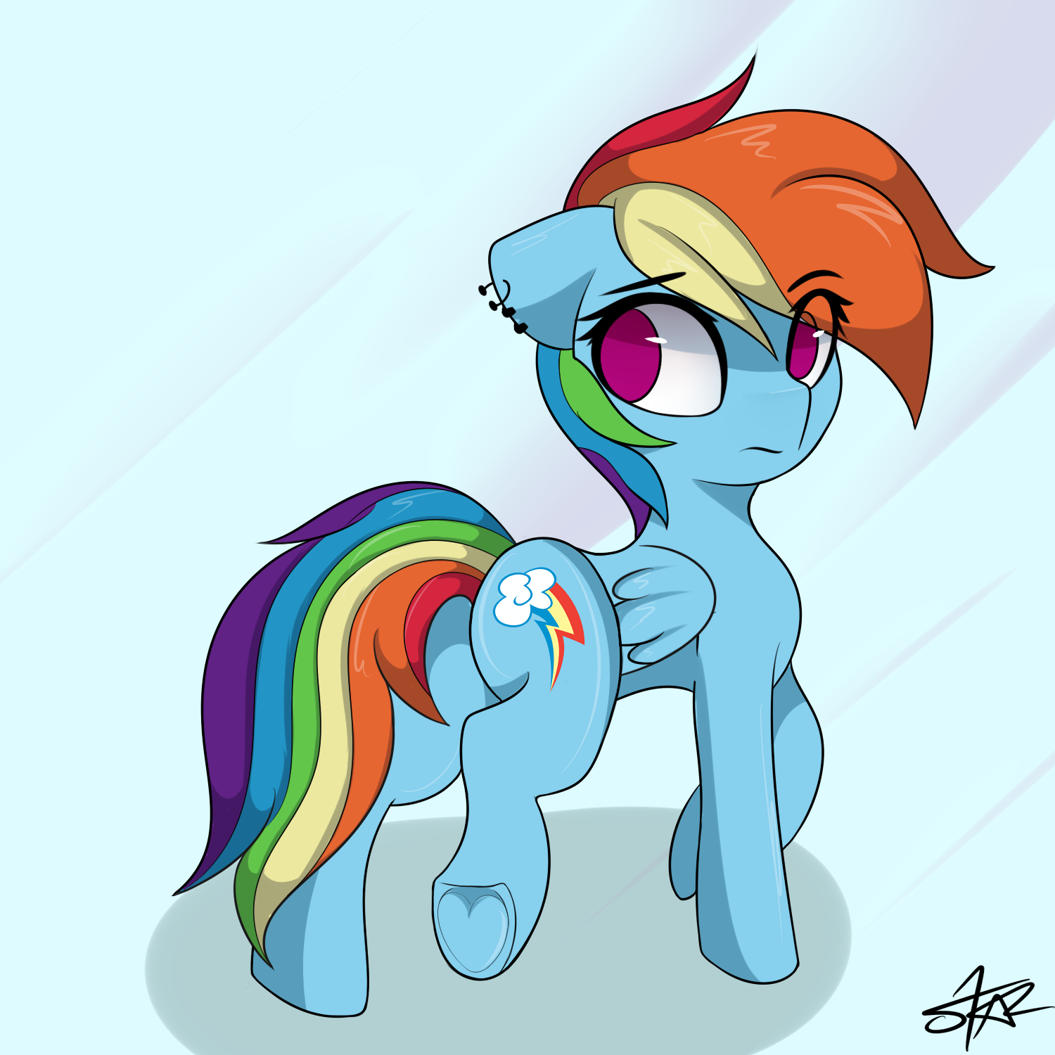 Так. Я знаю, у вас есть, потому что тут я это и видел. Ищу арт Дэшки, в чем-то типа кожанки и мотоциклетных очках, с шрамом через глаз, пони не хуманизация.