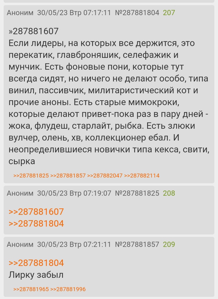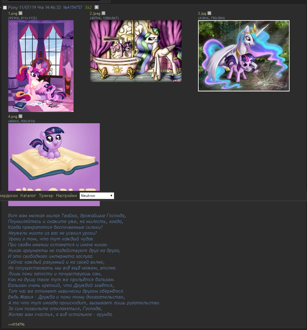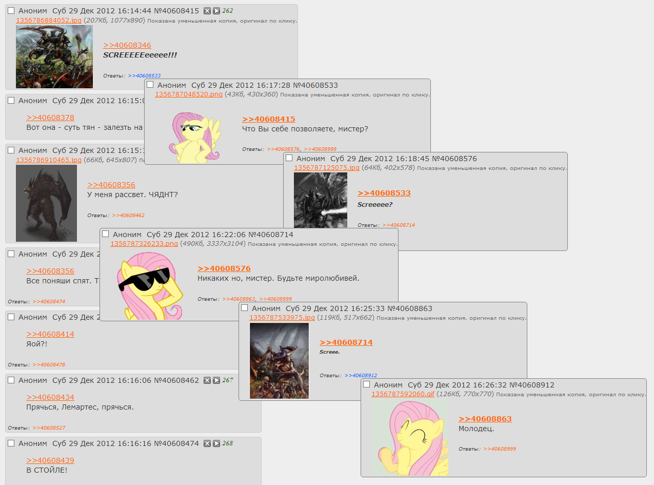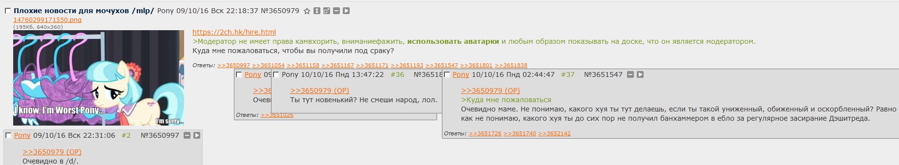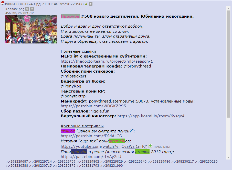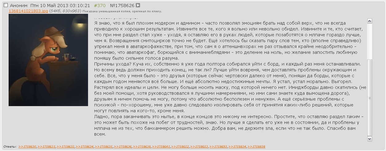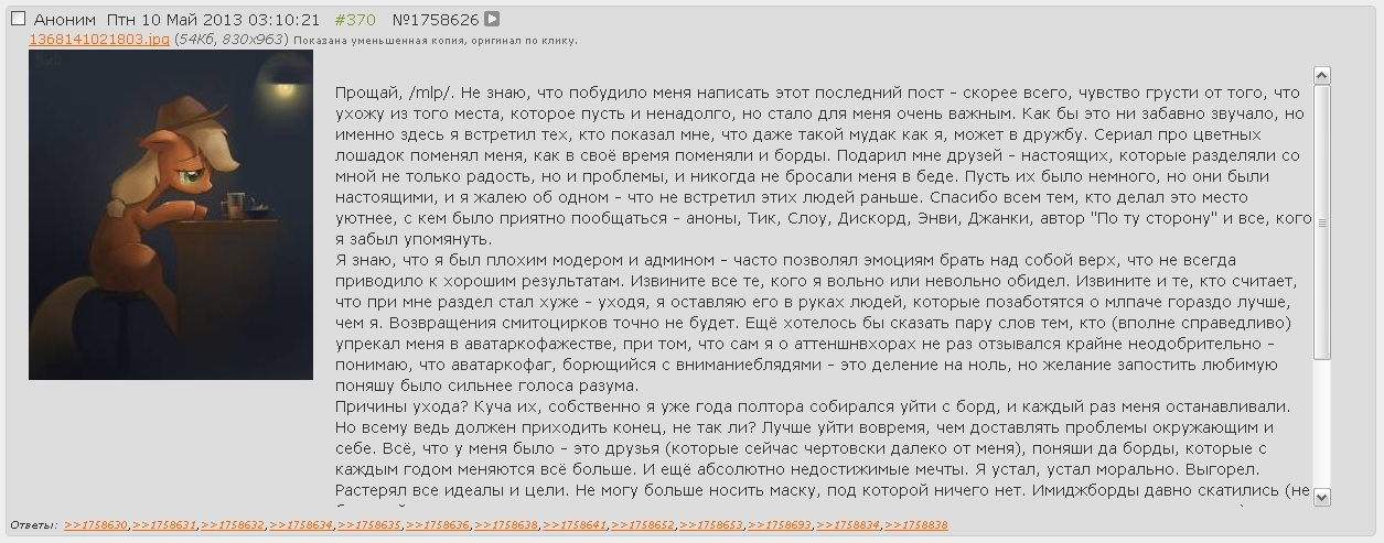 Посвящаю этот тред ушедшим с доски легендам, локальным мемам и пастам, платиновым тредшотам и всем прочим моментам из нашей поняшно-бордовской культуры, которые запомнились вам за лучшие годы. Пояснительной бригаде и рассказам старожилов всегда рады, заходите на огонёк.
