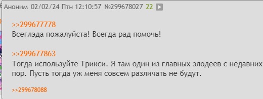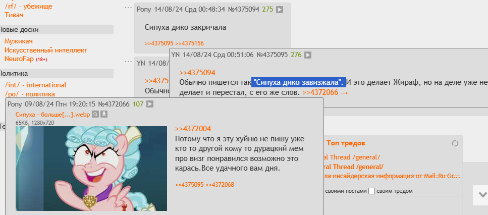 >>4326021 Собственно - заслужили, чтобы тут было это. Слишком глупый и стыдный форс с "сипусей", до сих пор стыдно. Мы только проснулись и видимо подумали, что это будет смешно