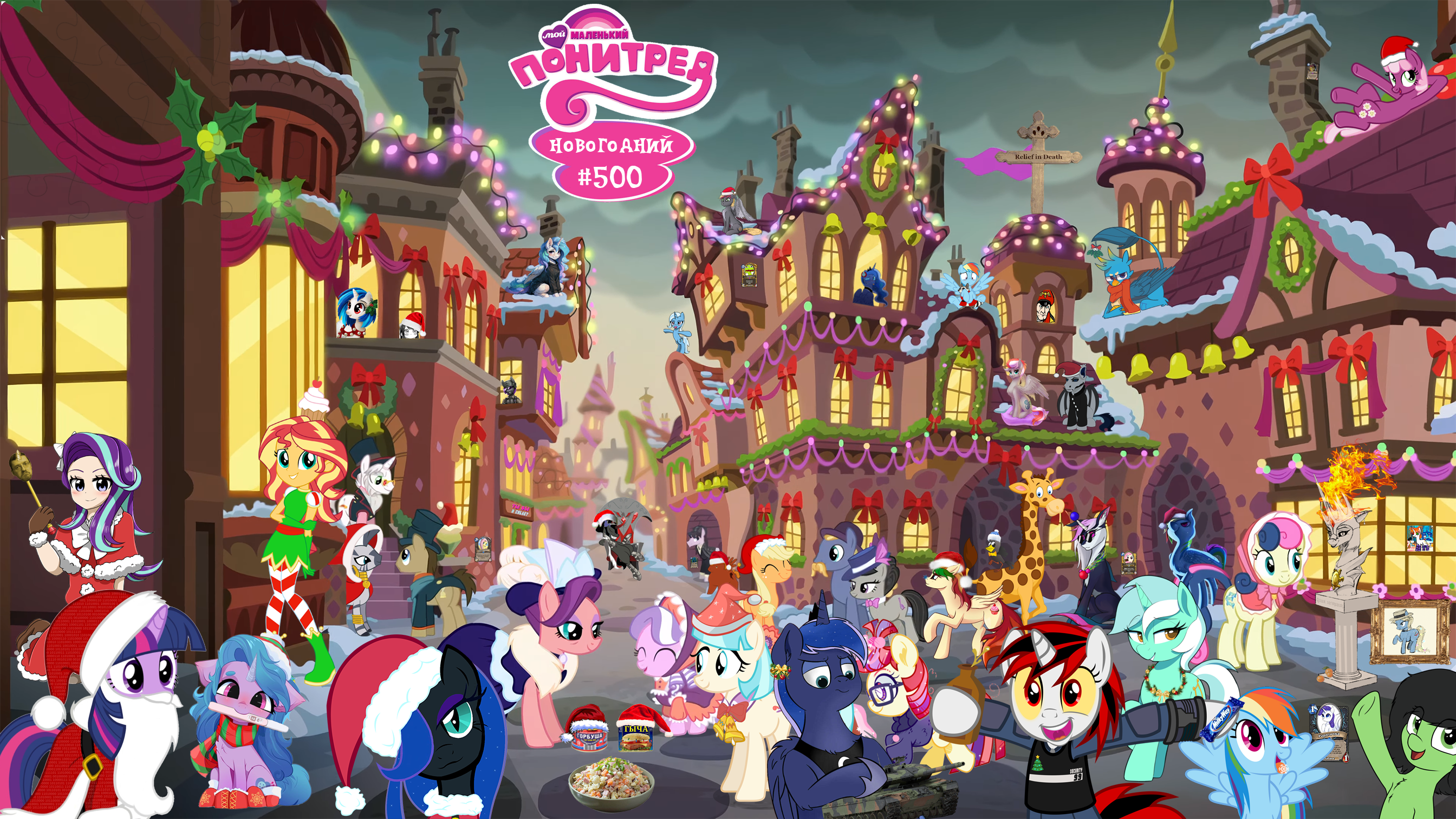 Седоватый пони, бренча доспехами, метался по комнате генерального анонимного клуба подобно брошенной в снег петарде-жучку. Только, в отличие от последней, извергал из себя не искры и дым, а разнообразные реплики: — Кац, ты неправильно расчленяешь овощи! — Капиталист, столько сала это перебор, клади меньше! — Ради Селестии, аноны, кто-нибудь, повесьте уже гирлянду! Внутренности клуба, надо сказать уже выглядели достаточно празднично: столы сдвинули в центр, накрыли скатёркою и активно сервировали, в углу стояла пышная и разлапистая ёлочка, которую старательно обвешивали два жеребца, а свечек было настолько много, что лампы были совершенно излишними. — Тополь, а чего это ты тут раско-ко-командовался? Народ тут не глупей паровоза, сами всё умеют. — подал голос чубастый пони, начищающий до блеска новенький молот. Тополь пропустил замечанье мимо ушей и продолжал попытки отдавать распоряженья всем подряд. — Эй, кто так жарит шашлыки, ну кто так жарит?!! — набросился на молодого жеребца с густыми чёрными бровями, сливающимися о в одну. — Ну откуда, откуда ему знать, если он этого в жизни не ел? Ему же такое нельзя. — снова вклинился чубастый. — Кисук, не мешай ему, не видишь, он доминирует. — произнёс пони, который расписывал окна белым порошком. — А где Слоубро? — поинтересовался Тополь. — На ферму к Эпплам пошёл, — ответили откуда-то из-за ёлки, — за яблоками. — За яблоками ли? — задал риторический вопрос сидящий у коробки с двумя маленькими лисами пони. По комнате прокатилось дружное ржание. — Кстати, об отсутствующих. Дискорда-то тоже на месте нет. — на секунду отвлёкся от работы кто-то из группки художников. — А зачем нам Дискорд? Он же поехал окончательно. Это даже здорово, что его нету. — ответил чубастый. За окном раздались звуки салюта, замерцали множественные фейрверки. — Хотя, стоп, как это нету, вот же он. Слышите, как бомбануло от моих слов? После этих слов дверь отворилась и в клуб залетел запыхвшийся жеребёнок. — Ириша, негодник, за кобылками бегал? — нахмурился Тополь. — Кобылки не нужны! — насупился жеребёнок, — Зачем мне кобылки, когда есть девушки? — Но ведь "Мои маленькие люди" это мультфильм для годовалых жеребят! — засмеялся жеребец, расставлявший на столе блюда в костюме анимешной девочки. — Во-во, они же нарисованные! — подхватил другой пони. — Дядя Дик, дядя Энви, что вы делаете, прекратите! — стуча копытцами пищал Ириш, пытаясь перекричать гоготанье пары дюжин глоток. Когда смех улёгся, Ириш подошёл к жеребцу, яросто стучавшему по клавишам ундервуда, мелодично звякавшего в ответ. — Тётя Жура, а мне точно будет новогодний подарок? — У папы своёго спроси, он же тебе латы обещал подарить. — ответил Жур, злобно зыркнув в сторону Тополя. — Как крышу залатать или лестницу починить, так нету времени, а как доспехи сковать — пожалуйста. — вздохнул Жур в пространство. Некоторое время громкой речи не было слышно: все погрузились в работу, стараясь успеть пораньше всё подготовить и сесть, наконец, за общий стол. — Осталось полчаса... — проговорил чубастый, попыхиваю трубкою и косясь на свои карманные часы. — Настолько туп, что живёт в другом часовом поясе. — оборвал чубастого грузный жеребец в чёрных очках и громко сказал. — Не слушайте этого шизофреника, у нас ещё три с половиной часа. — О, толстяк закукарекал. — усмехнулся Кац, с чувс