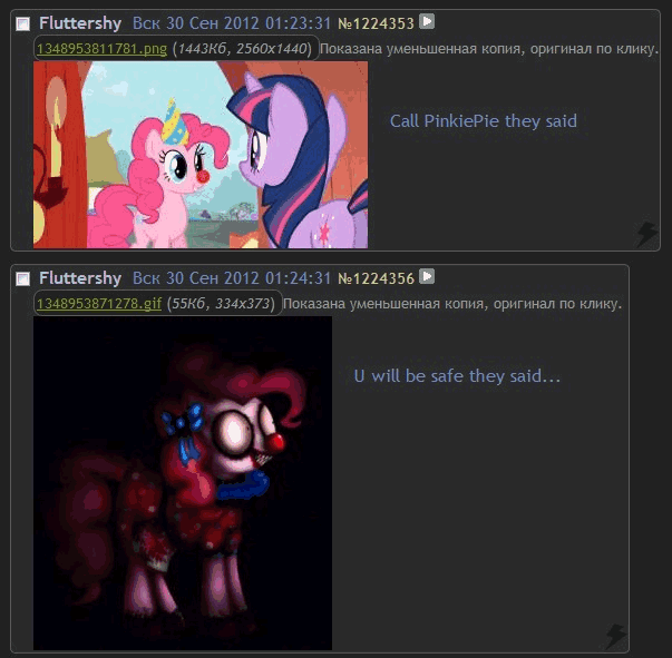 На картинке части пони. На картинке крипота. Блинки Пай на заднем фоне. На переднем - темнота. Окровавленная грива. Нож, пила, бинты, цемент. Пинкамина смотрит криво… Это, дети, кац-контент.